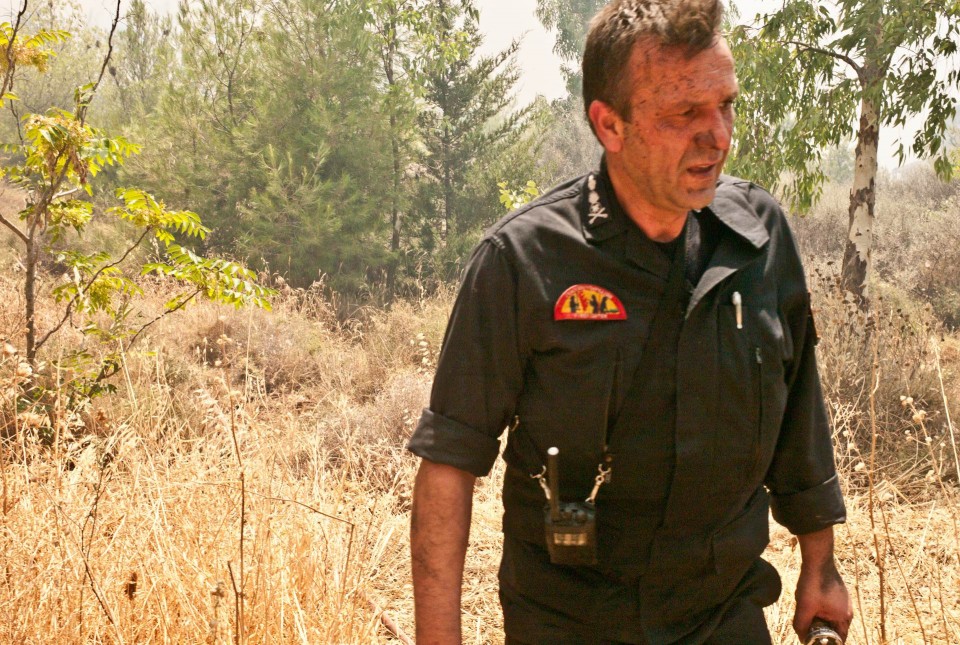 Πυροσβέστης κατά την διάρκεια κατάσβεσης μεγάλης φωτιάς στον Υμηττό. Η φωτιά ξεκίνησε από την περιοχή του Καρέα στα σύνορα με τον Βύρωνα και γρήγορα επεκτάθηκε, λόγω του πολύ δυνατού αέρα, στα νότια προάστια της Αττικής, που συνορέυουν με τον Υμηττό. Παρασκευή, 17 Ιουλίου 2015.