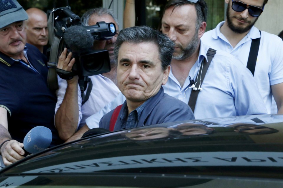 Ο υπουργός οικονομικών Ευκλείδης Τσακαλώτος αποχωρεί από την συνεδρίαση της Πολιτικής Γραμματείας του ΣΥΡΙΖΑ, όπου ενημέρωσε για το κείμενο πιθανής συμφωνίας με τους διεθνείς δανειστές της Ελλάδας. Αθήνα, Τρίτη 14 Ιουλίου 2015.