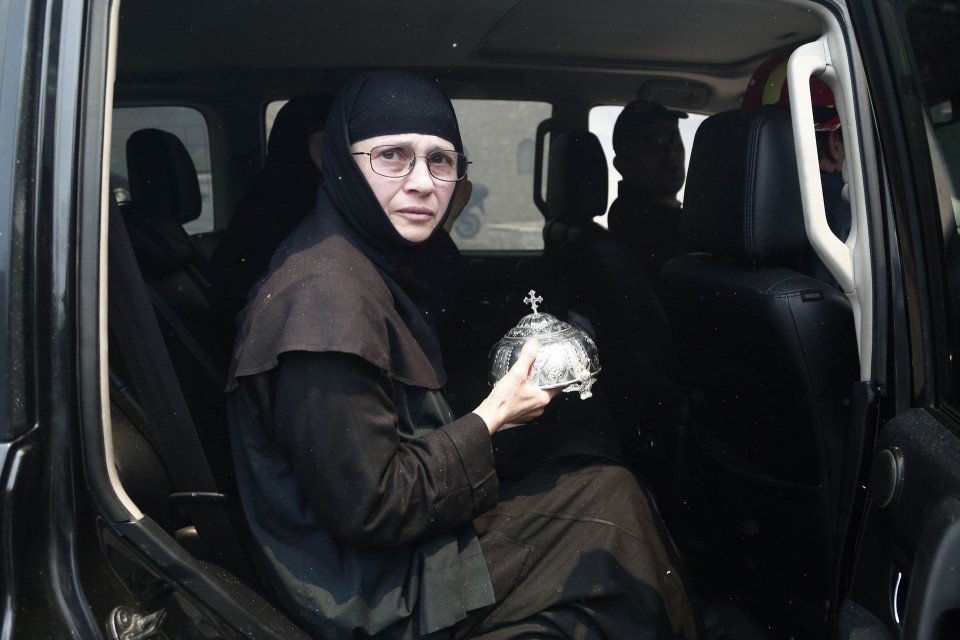 Μοναχή κατά την εκκένωση του μοναστηριού του Αγίου Ιωάννη στον Καρέα. Φωτιά στα νότια προάστια της Αττικής . Παρασκευή 17 Ιουλίου 2015.