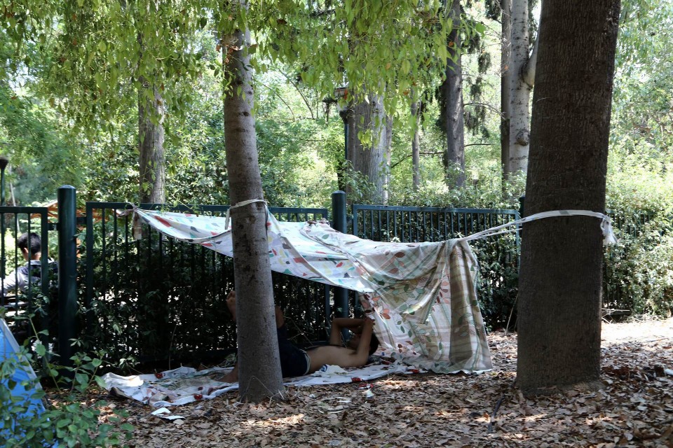 Hundreds of migrants, most of them from Afghanistan that entered Greece by crossing the Aegean sea during the last 6 months live in a make-shift camp at a park in central Athens.On Friday July 31, 2015 / Καταυλισμός προσφύγων από το Αφγανιστάν στο Πεδίο του Αρεως, Παρασκευή 31 Ιουλίου 2015