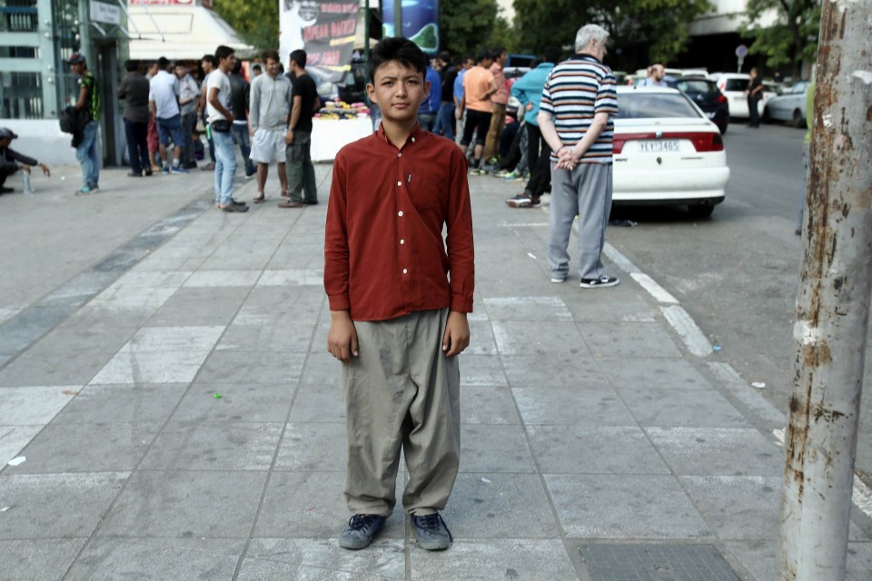 Μικρό αγόρι πρόσφυγας στην πλατεία Βικτωρίας. Πάνω από 2.000 μετανάστες και πρόσφυγες απο το Αφγανιστάν, την Συρία, το Ιράν και το Ιράκ, ζουν για περισσότερο απο ένα μήνα στην πλατεία Βικτωρίας, στο κέντρο της Αθήνας. Οι μετανάστες φτάνουν στην πλατεία, μετά την άφιξή τους στο λιμάνι του Πειραιά, με πλοία που καθημερινά τους μεταφέρουν απο τα νησιά του βορειοανατολικού Αιγαίου. Ολοι επιθυμούν να συνεχίσουν τον ταξίδι τους μέχρι την Γερμανία και για αυτό περιμένουν να τους σταλούν χρήματα από συγγενείς στην πατρίδα τους, ενώ αρκετοί δηλώνουν πως δεν έχουν την δυνατότητα να βρούν τα χρήματα. Καθημερινά, εθελοντές απο Ευρωπαϊκές χώρες, κάτοικοι της περιοχής και η κοινωνική κουζίνα "Ο Αλλος Ανθρωπος" μοιράζουν δωρεάν γεύματα στους μετανάστες. Αθήνα, Τετάρτη 30 Σεπτεμβρίου 2015.