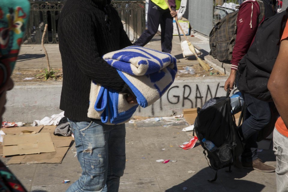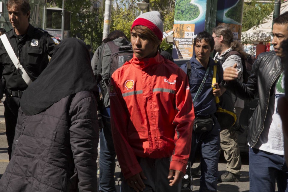 Πάνω από 2.000 μετανάστες και πρόσφυγες απο το Αφγανιστάν, την Συρία, το Ιράν και το Ιράκ, ζουν για περισσότερο απο ένα μήνα στην πλατεία Βικτωρίας, στο κέντρο της Αθήνας. Οι μετανάστες φτάνουν στην πλατεία, μετά την άφιξή τους στο λιμάνι του Πειραιά, με πλοία που καθημερινά τους μεταφέρουν απο τα νησιά του βορειοανατολικού Αιγαίου. Ολοι επιθυμούν να συνεχίσουν τον ταξίδι τους μέχρι την Γερμανία και για αυτό περιμένουν να τους σταλούν χρήματα από συγγενείς στην πατρίδα τους, ενώ αρκετοί δηλώνουν πως δεν έχουν την δυνατότητα να βρούν τα χρήματα. Καθημερινά, εθελοντές απο Ευρωπαϊκές χώρες, κάτοικοι της περιοχής και η κοινωνική κουζίνα "Ο Αλλος Ανθρωπος" μοιράζουν δωρεάν γεύματα στους μετανάστες. Αθήνα, Τετάρτη 30 Σεπτεμβρίου 2015.