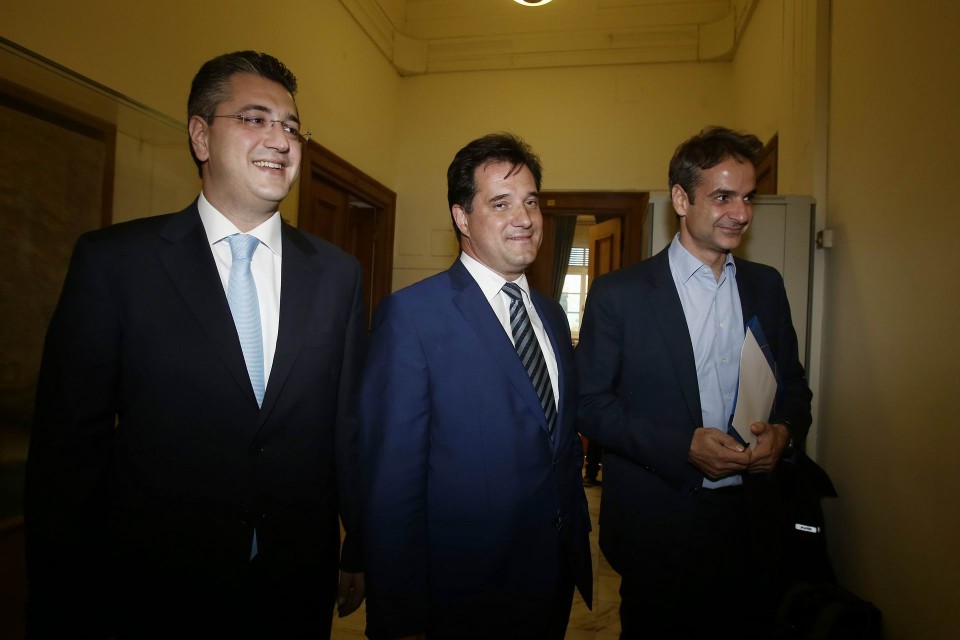 Απόστολος Τζιτζικώστας, Άδωνις Γεωργιάδης, Κυριάκος Μητσοτάκης. Τρεις από τους υποψήφιους για την προεδρία του κόμματος της Νέας Δημοκρατίας. Κατά την συνεδρίαση της Κοινοβουλευτικής Ομάδας της Νέας Δημοκρατίας. Αθήνα, Τετάρτη 14 Οκτωβρίου 2015.