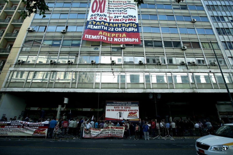 Συμβολική κατάληψη του υπουργείου Εργασίας από εργαζόμενους, από δεκάδες σωματεία του ιδιωτικού και του δημόσιου τομέα και το ΠΑΜΕ. Αθήνα, Πέμπτη 15 Οκτωβρίου 2015.