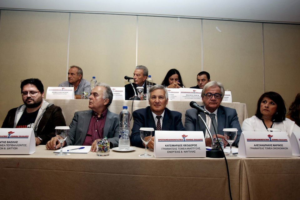 Μέλη του νεοσυσταθέντος Χριστιανοδημοκρατικού Κόμματος, στην συνέντευξη Τύπου του προέδρου του κόμματος Νίκου Νικολόπουλου. Αθήνα, Τρίτη 13 Οκτωβρίου 2015.