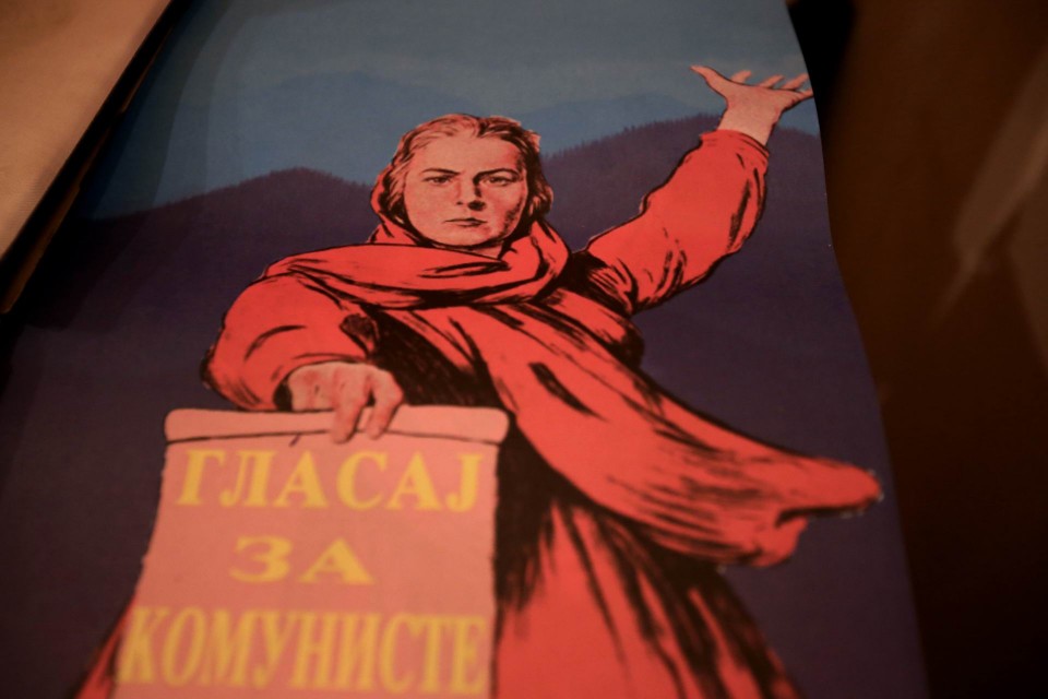 Αφίσα της εποχής της επαναστατικής Ρωσίας στο 41ο Φεστιβάλ της ΚΝΕ-«Οδηγητής», στο πάρκο Τρίτση. Αθήνα, Σάββατο 10 Οκτωβρίου 2015.