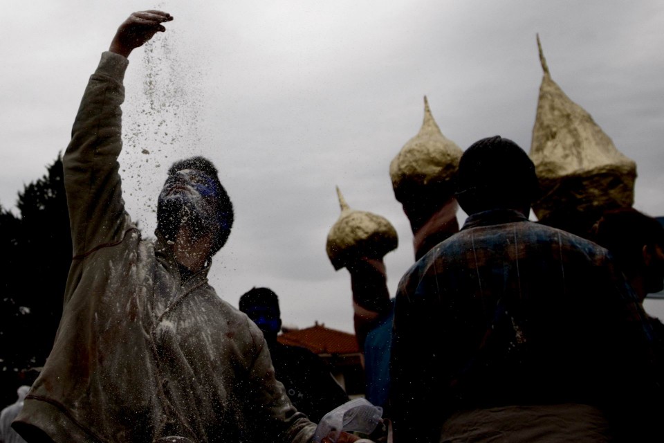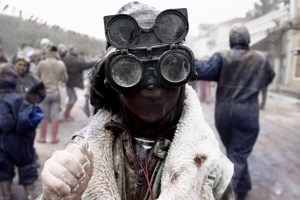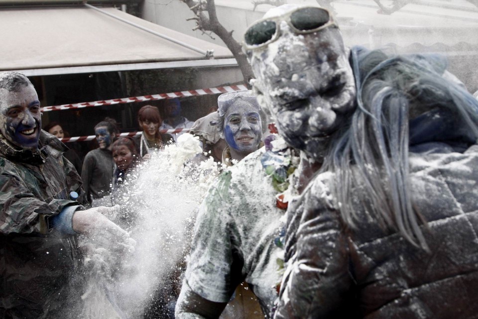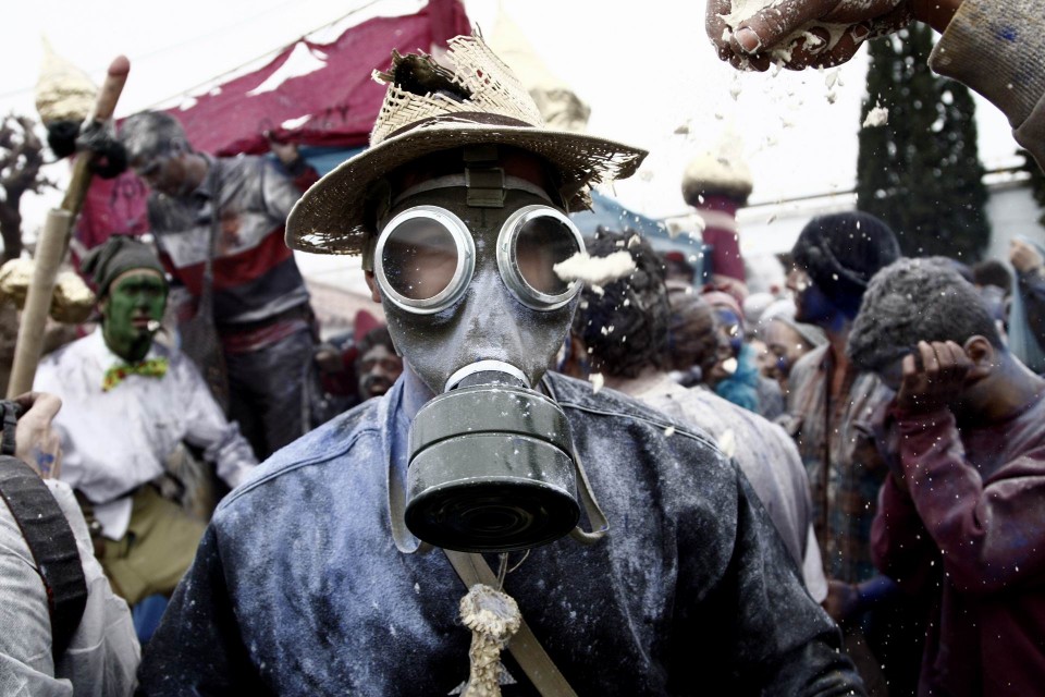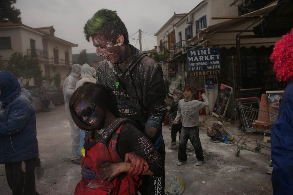 Τα Αλευρομουτζουρώματα στην κωμόπολη του Γαλαξειδίου, στο νομό Φωκίδας, είναι ένα από τα πιο γνωστά παραδοσιακά έθιμα των Απόκριας και του ελληνικού Καρναβαλιού. Την Καθαρή Δευτέρα, μετά από τρελά μασκαρέματα και ξέφρενα γλέντια κατά την διάρκεια των τριών βδομάδων που κρατάνε οι Απόκριες, ομάδες νέων κατεβαίνουν στο λιμάνι της πόλης, φορώντας τα παλιότερα ρούχα τους και κρατώντας σακιά με αλεύρι αναμεμειγμένο με διάφορα χρώματα. Το αλεύρι πετιέται άφθονο από παντού, ο “πόλεμος” αρχίζει, και σύννεφο πυκνό θολώνει τον αέρα και τα πρόσωπα. Κανείς δεν μπορεί να δει καθαρά πια. Νταούλια και φλογέρες δίνουν τον ρυθμό, χοροί γύρω από τις φωτιές κρατούν την ατμόσφαιρα ζεστή και άφθονο αλκοόλ χύνεται στα στόματα των πιο τολμηρών, αρκετοί από τους οποίους βουτούν στο τέλος για να ξεπλυθούν, στα κρύα νερά του Κορινθιακού. Το Τριώδιο έκλεισε, η μέθη δίνει την θέση της στην εγκαρτέρηση, η αυστηρή κυρά Σαρακοστή της Ορθοδοξίας, με τα εφτά πόδια, ξεκινάει.