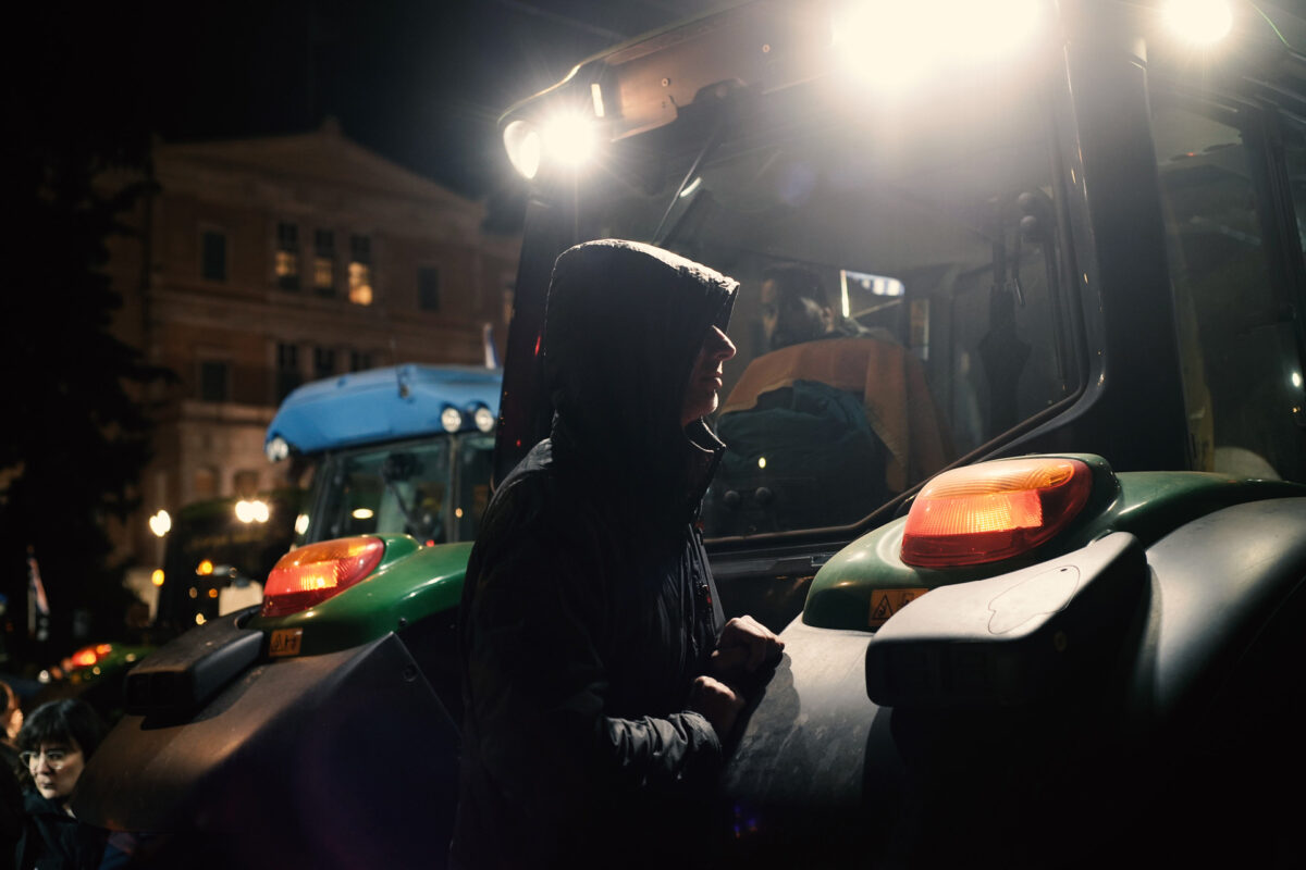 Στιγμιότυπα από το αγροτικό συλλαλητήριο στο Σύνταγμα, στο οποίο οι αγρότες διανυκτέρευσαν.