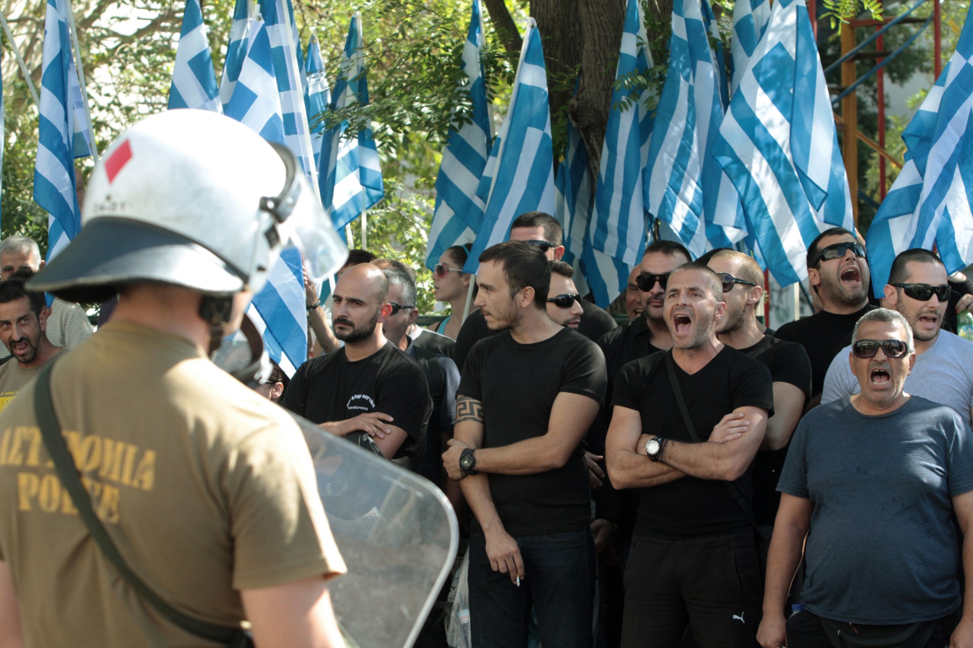 Riot police push back the supporters of Golden dawn outside the police headquarters in Athens, on September 28, 2013 / Ματ αποθεί του οπαδούς της χρυσής αυγής έξω από την ΓΑΔΑ