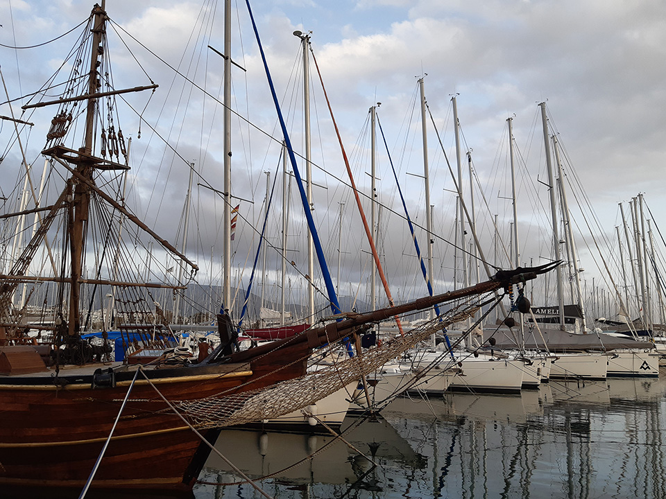 Κατάρτια στις παρυφές της πόλης. Αύρα και αλμύρα. Έρημες μαρίνες, άδεια παγκάκια και το θωρηκτό Αβέρωφ επτασφράγιστο. Στο δρόμο του γυρισμού, ένα κλικ μέσα από το αυτοκίνητο, να παγώσει την ομορφιά του δειλινού πριν ξαναμπώ στους τέσσερεις τοίχους.