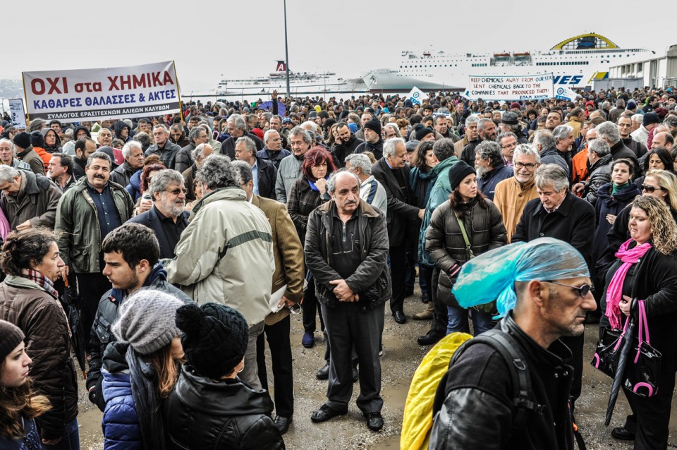 Νέοι, παιδιά, ακτιβιστές και λιγότερο πολιτικές οργανώσεις συγκεντρώθηκαν στο λιμάνι της Σούδας και διαμαρτυρήθηκαν ειρηνικά ενάντια στην απόφαση για καταστροφή του χημικού οπλοστασίου της Συρίας στη Λεκάνη της Μεσογείου. Η φωτογράφος Έφη Τσακρακλίδου ήταν εκεί και μας μεταφέρει στο λιμάνι που ακούστηκαν το μεσημέρι της Κυριακής, παιδικές φωνές αλλά και ριζίτικα τραγούδια από τον Ψαραντώνη.
