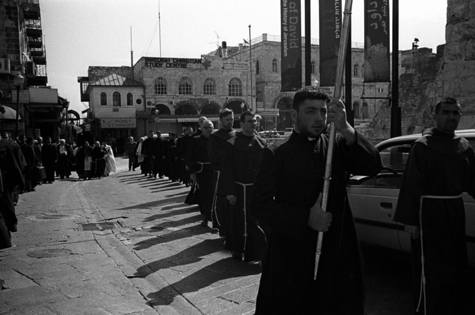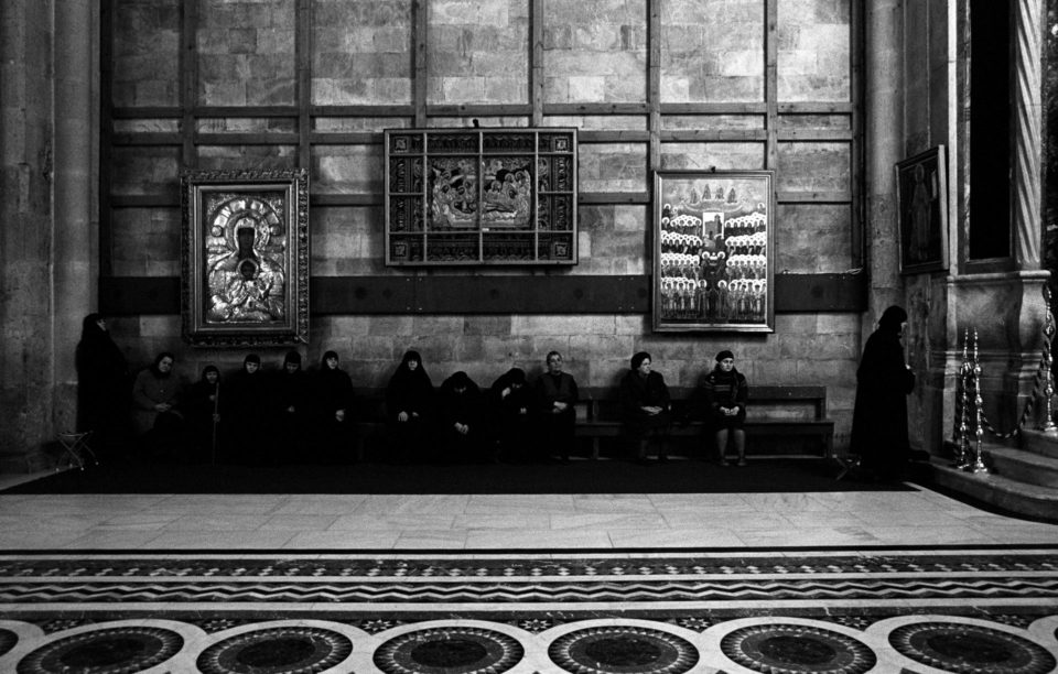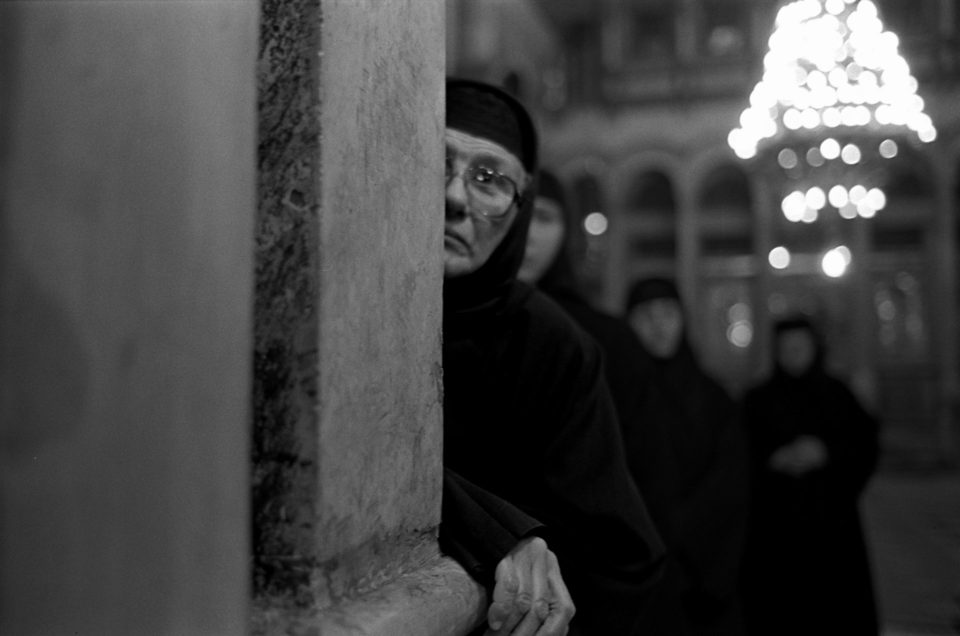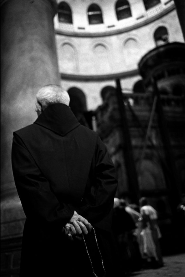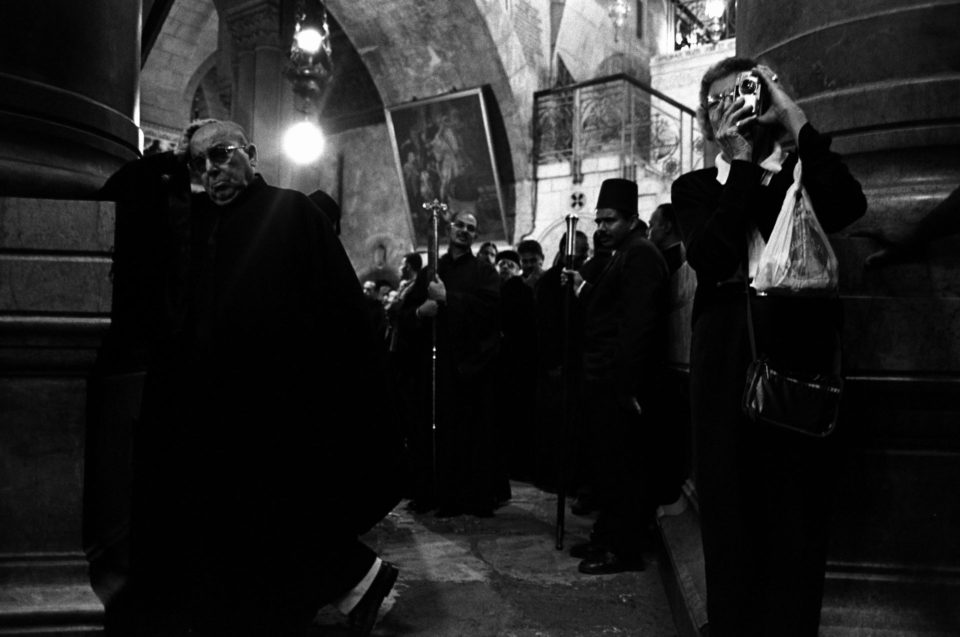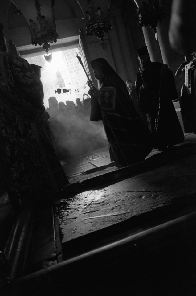 Όλα τα χριστιανικά δόγματα συναντώνται εκεί, όμως μόνο τρεις Εκκλησίες: το Ελληνορθόδοξο Πατριαρχείο, το Τάγμα των Φραγκισκανών μοναχών και το Αρμένικο Πατριαρχείο, έχουν κυριαρχικά δικαιώματα στο κτίριο και στα προσκυνήματα του. Οι Κόπτες και οι Συριανοί έχουν μόνο το δικαίωμα της προσευχής, ενώ οι Χριστιανοί των άλλων δογμάτων μπορούν μόνο να επισκέπτονται το Ναό ως απλοί προσκυνητές. Οι Εβραίοι και οι Μουσουλμάνοι, τέλος, λατρεύουν τους θεούς τους στην ίδια τοποθεσία. Η πνευματικότητα που απορρέει από την ιερότητα του χώρου και η δύναμή του ως σύμβολο απόδειξης της θεϊκής ύπαρξης, έχει καταστήσει, αυτό το τόσο μικρό και παλαιό κομμάτι γης, ιερό κειμήλιο όλης της ανθρωπότητας και μήτρα όλων των παθών της. Μια μυστικιστική καταγραφή του σημείου μηδέν του δυτικού ανθρώπου, από τον φωτογράφο Άγγελο Χριστοφιλόπουλο.