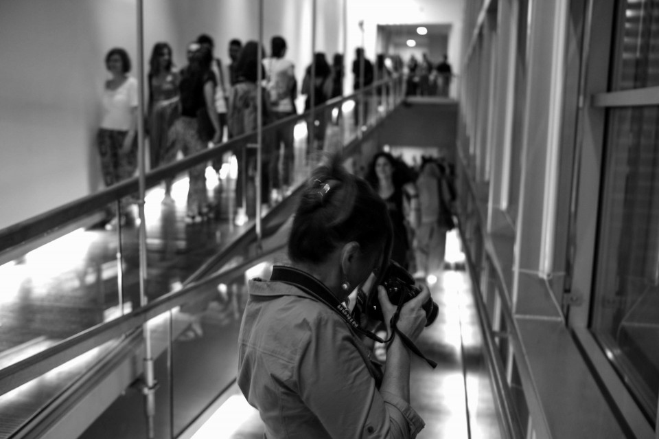 Γυναίκα φωτογράφος στα εγκαίνια του φεστιβάλ. Εγκαίνια του Athens Photo Festival 2016 στο Μουσείο Μπενάκη, κτίριο Πειραιώς.