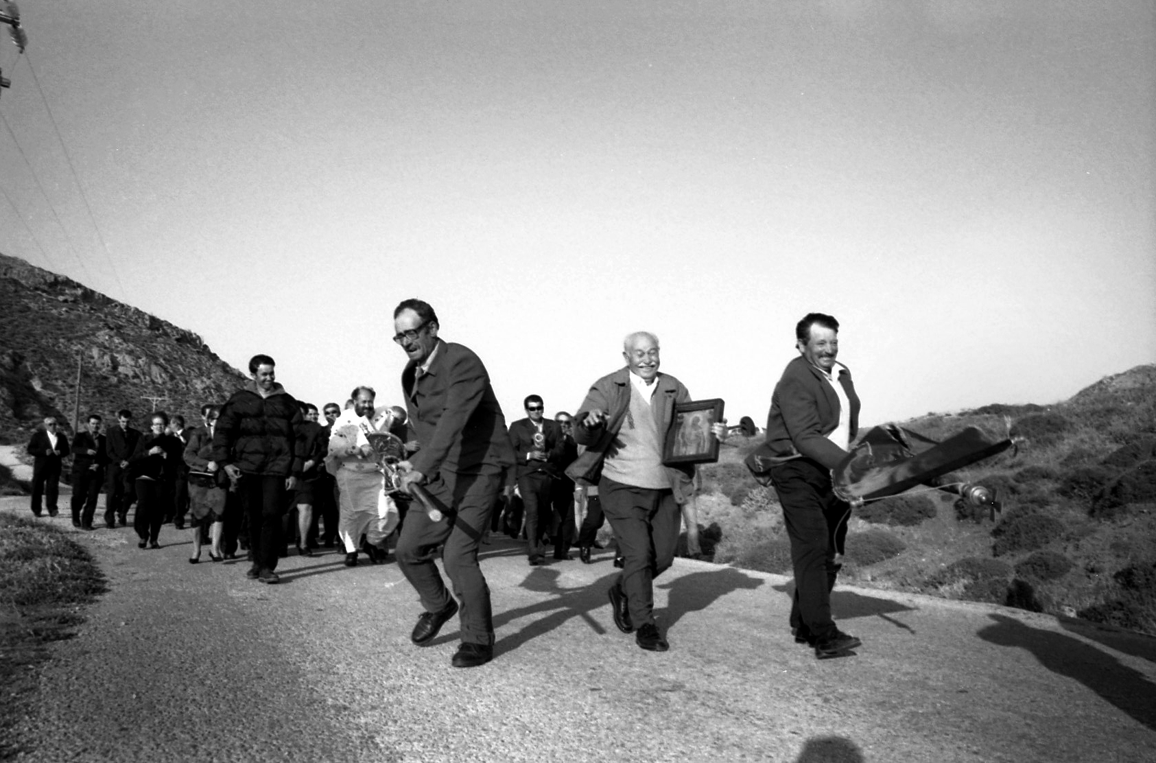 Η περιφορά της εικόνας της Ανάστασης στους δρόμους του νησιού.Προσπάθεια να μην πάρει ο αέρας τα εξαπτέρυγα