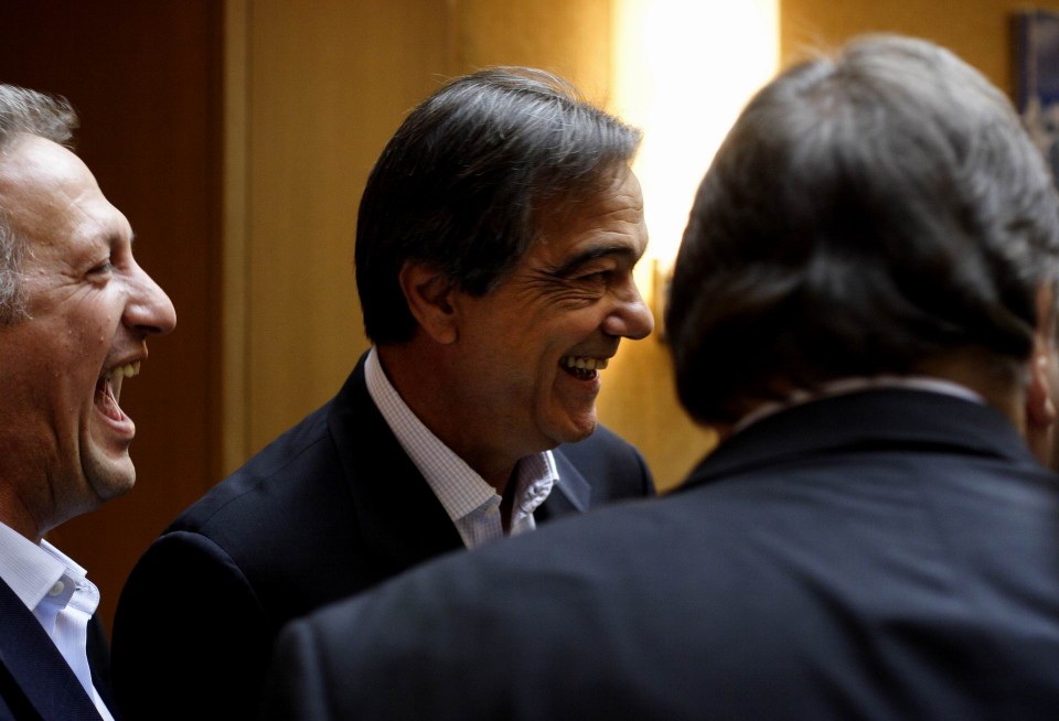 Ο Κώστας Σημίτης σε διάλεξη του νομπελίστα οικονομολόγου Πολ Κρούγκμαν στο Μέγαρο Μουσικής, Απρίλος 2015.