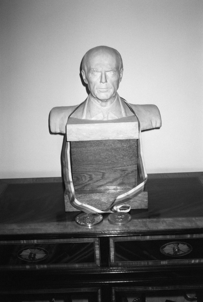 Προτομή του Ανδρέα Παπανδρέου στην "ροζ βίλα", την τελευταία κατοικία του όπου διέμενε με την Δήμητρα Λιάνη, 1999.