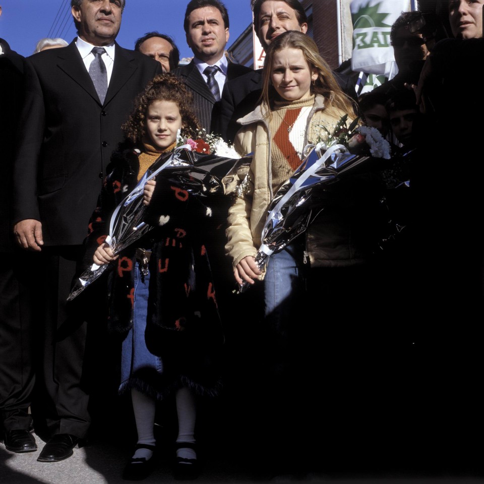 Κόσμος υποδέχεται τον Γιώργο Παπανδρέου στην Ορεστιάδα, στο πλαίσιο προεκλογικής εκστρατείας για τις εκλογές του 2004, Ιανουάριος 2004.