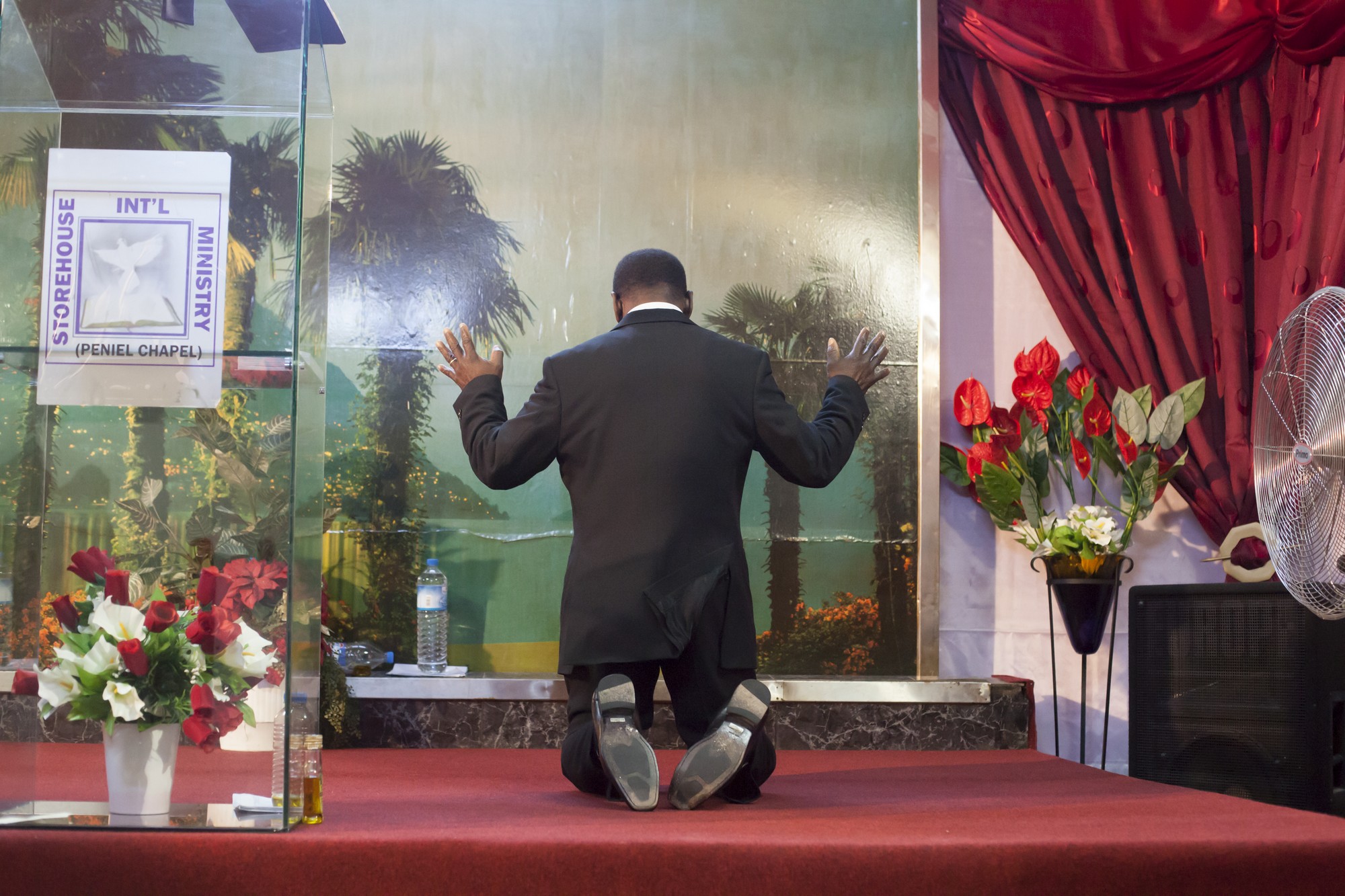 Η πρώτη μου επαφή, έγινε με τον πάστορα Emmanuel. Τον βρήκα στο πεζοδρόμιο, να συνομιλεί με άλλους πιστούς και τόλμησα να τον ρωτήσω αν θα μπορούσα  να φωτογραφήσω τη λειτουργία. Μου το επέτρεψε και έτσι  βρέθηκα στο υπόγειο. Στάθηκα για λίγο να πάρω μία πρώτη γεύση και το πρώτο που παρατήρησα, είναι ότι οι άνθρωποι εκεί, δρούσαν μέσα σε ένα πολύ πιο ελεύθερο πλαίσιο απ’αυτό που συνηθίζεται στις ορθόδοξες εκκλησίες. Χόρευαν και τραγουδούσαν, παρουσία μουσικών οργάνων. Παιδάκια έτρεχαν εδώ κι εκεί. Καθόλου δεν έδειχναν να καταπιέζουν τα «άγρια» τους ένστικτα.