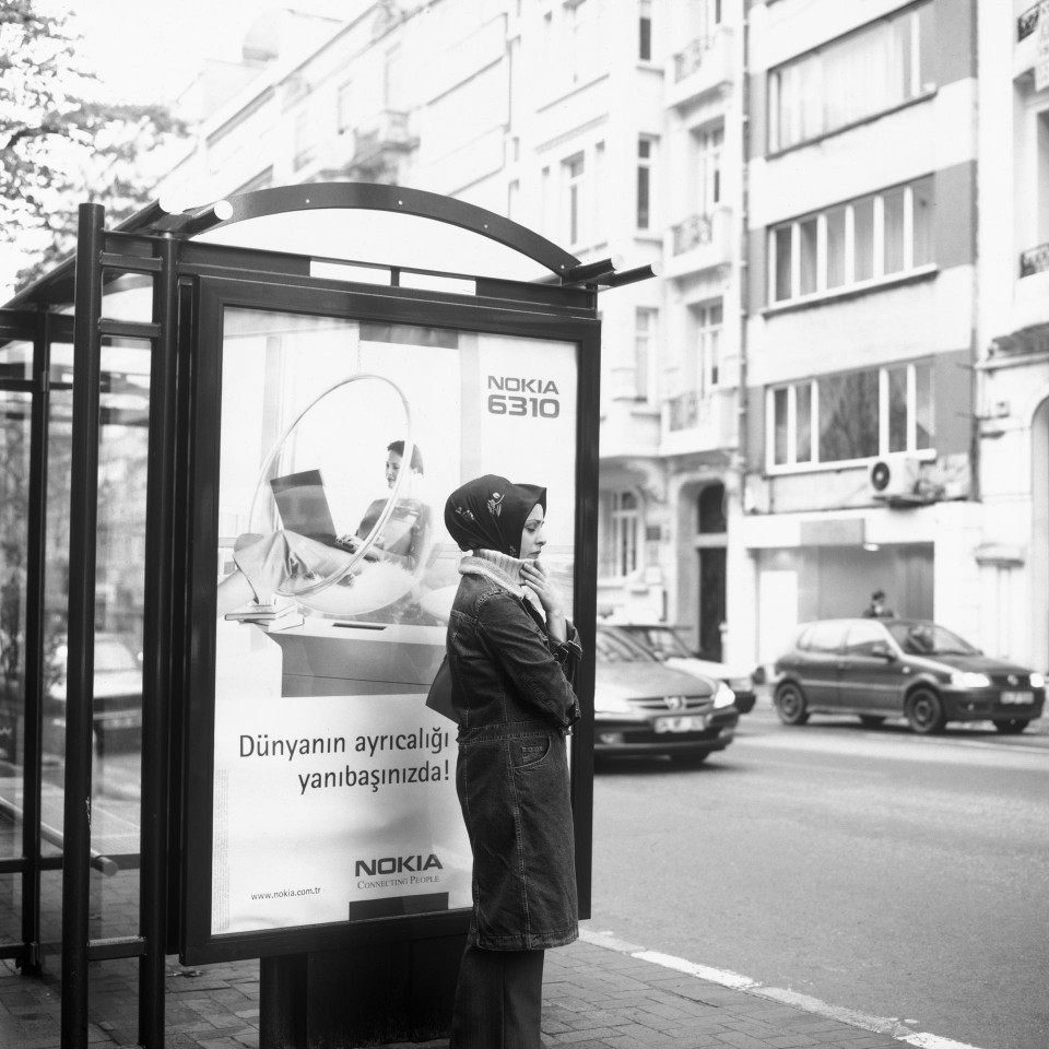 Νεαρή μουσουλμάνα, ενώ περιμένει σε στάση λεωφορείου. Κωνσταντινούπολη, Τουρκία, Μάρτιος 2002