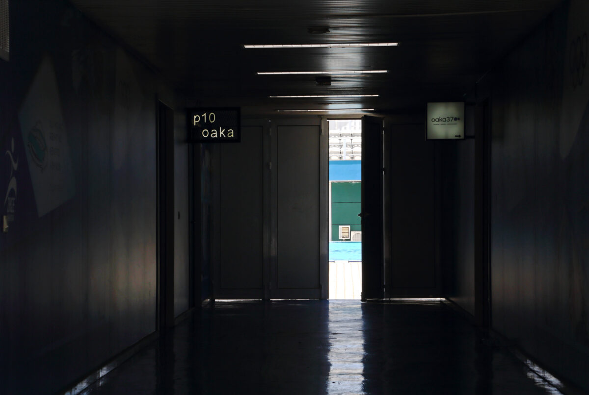 Η είσοδος προς το ανοιχτό κολυμβητήριο στο ΟΑΚΑ, Μαρούσι, Ιούνιος 2022.