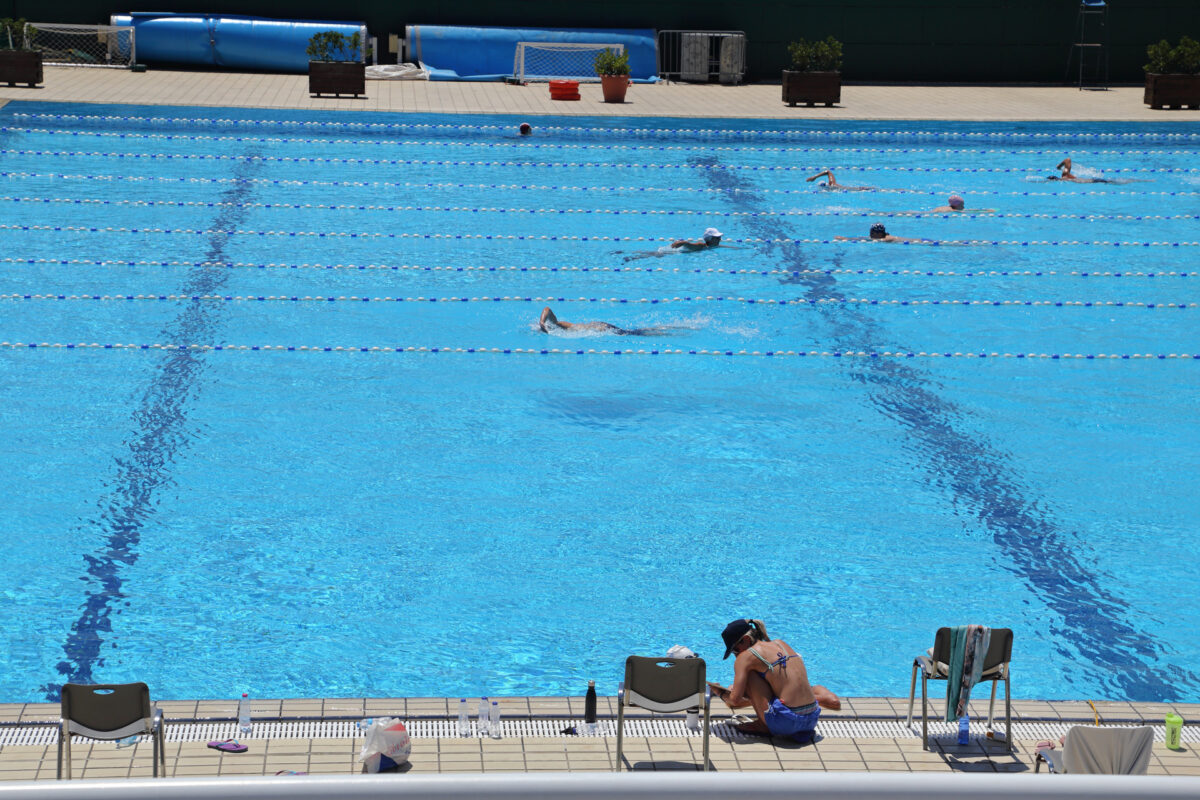 Η δεύτερη, ανοιχτή πισίνα του Κολυμβητικού Κέντρου στο ΟΑΚΑ, Μαρούσι, Ιούνιος 2022.