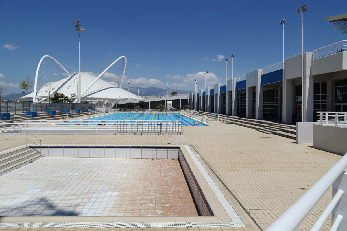 Εξω από τις εγκαταστάσεις του Κέντρου Κολύμβησης στο ΟΑΚΑ, Μαρούσι, Ιούνιος 2022.