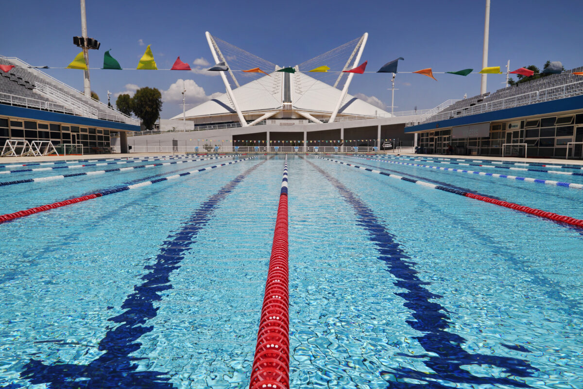Η μεγάλη ανοιχτή πισίνα του Κολυμβητικού Κέντρου στο ΟΑΚΑ, Μαρούσι, Ιούνιος 2022.