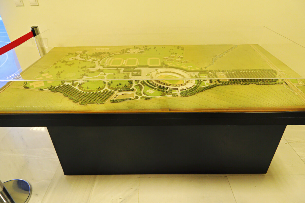 Η ιστορική μακέτα του 1981 του αρχικού Ολυμπιακού Κέντρου στην Καλογρέζα, Μαρούσι, Ιούνιος 2022.