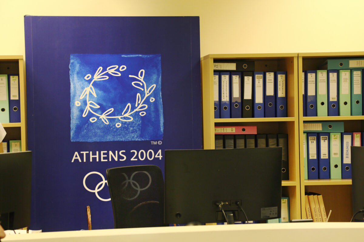 Το σήμα-λογότυπο των Ολυμπιακών Αγώνων 2004, ΟΑΚΑ, Μαρούσι, Ιούνιος 2022.