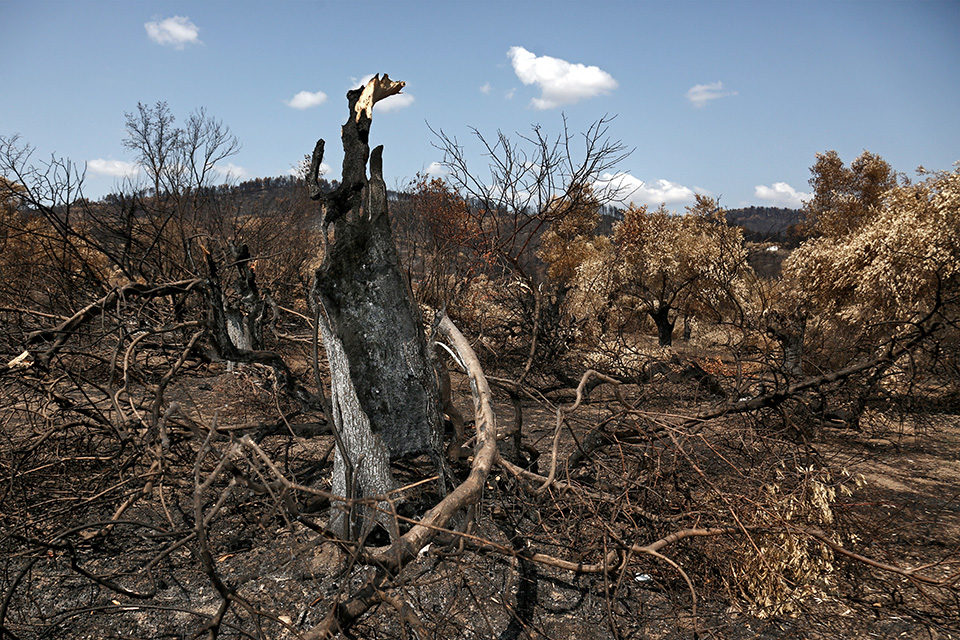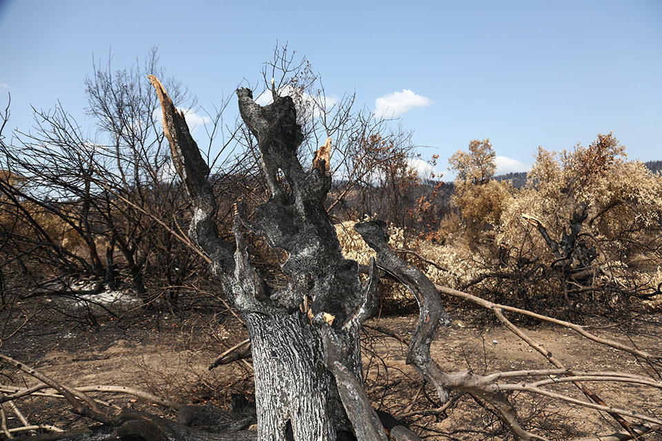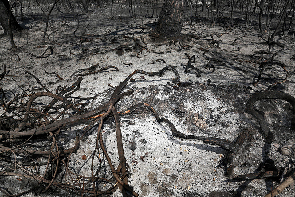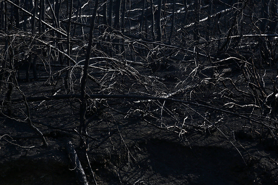 Το πλούσιο οικοσύστημα – καταφύγιο ζωής για χιλιάδες ζώα και πτηνά, σπίτι πεύκων, φορέας οξυγόνου και γαλήνης για τις κοινότητες – έχει αντικατασταθεί από ένα απόκοσμο τοπίο. Ένα απέραντο μαύρο, με καρβουνισμένα εδάφη και απογυμνωμένους σκελετούς δέντρων. Αντικατοπτρισμός του συλλογικού πένθους για τη φύση.