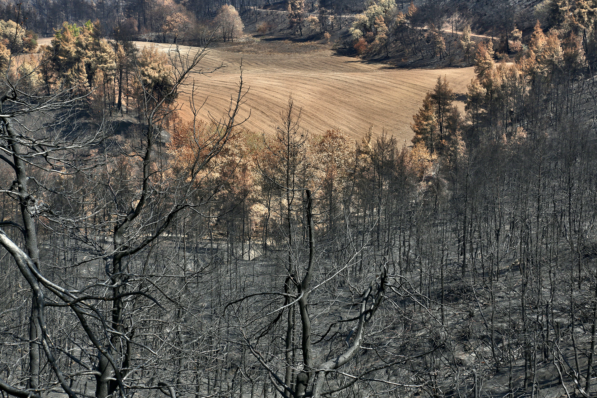 Το πλούσιο οικοσύστημα – καταφύγιο ζωής για χιλιάδες ζώα και πτηνά, σπίτι πεύκων, φορέας οξυγόνου και γαλήνης για τις κοινότητες – έχει αντικατασταθεί από ένα απόκοσμο τοπίο. Ένα απέραντο μαύρο, με καρβουνισμένα εδάφη και απογυμνωμένους σκελετούς δέντρων. Αντικατοπτρισμός του συλλογικού πένθους για τη φύση.