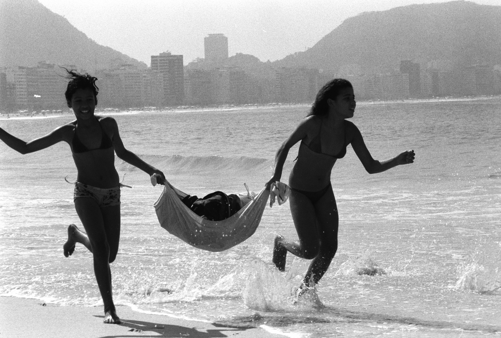 Κορίτσια τρέχουν ανέμελα στην αμμουδιά της παραλίας Ιπανέμα, Ρίο ντε Τζανέιρο, Βραζιλία 2001