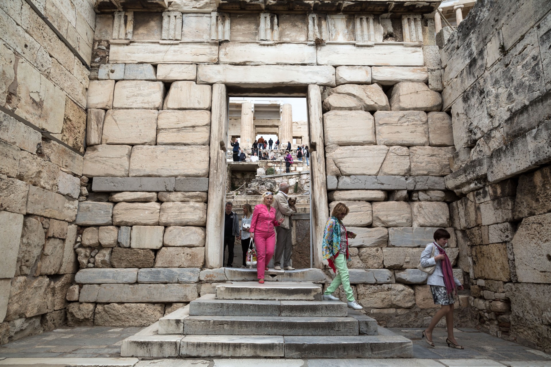 Πολλά επίπεδα πολιτισμών. Η ελληνική Ακρόπολη και η ρωμαϊκή Πύλη του Αδριανού .