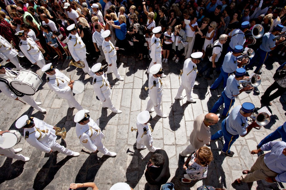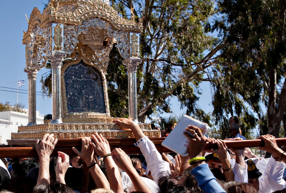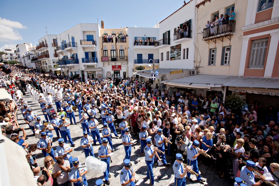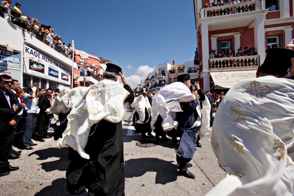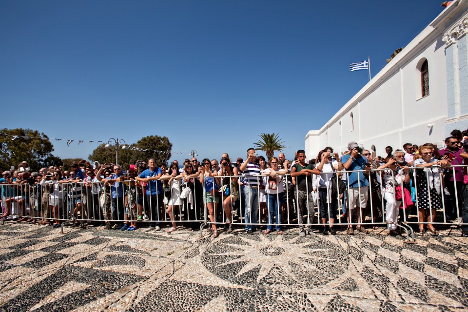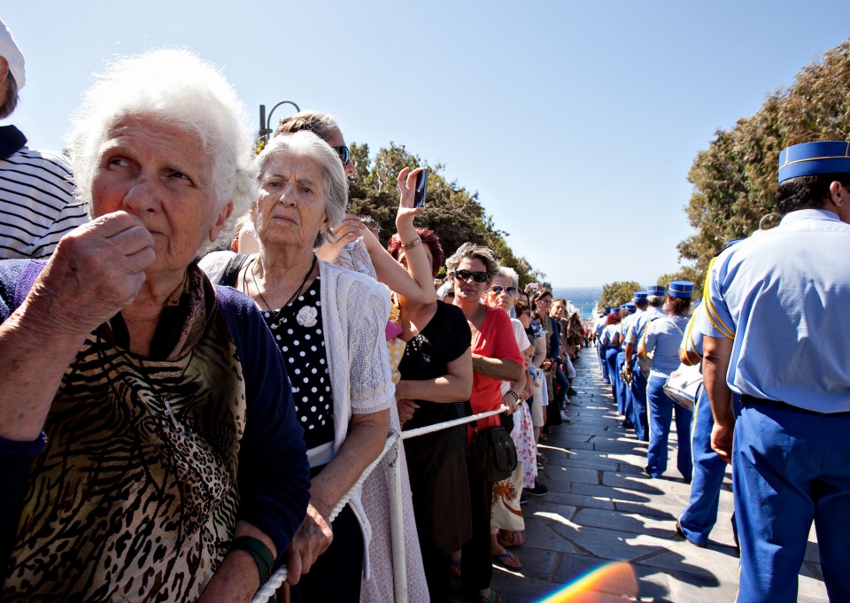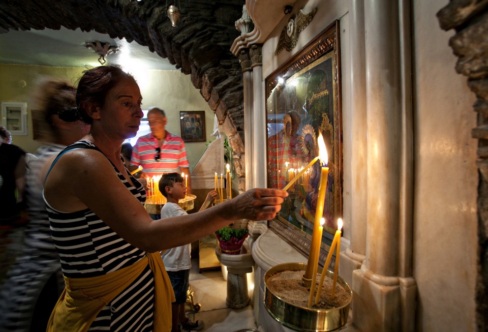 Τάματα, ματωμένα γόνατα και βουτιές στο λιμάνι. Η Έβελυν Φώσκολου απαθανάτισε τον Δεκαπενταύγουστο στο νησί της Μεγαλόχαρης.