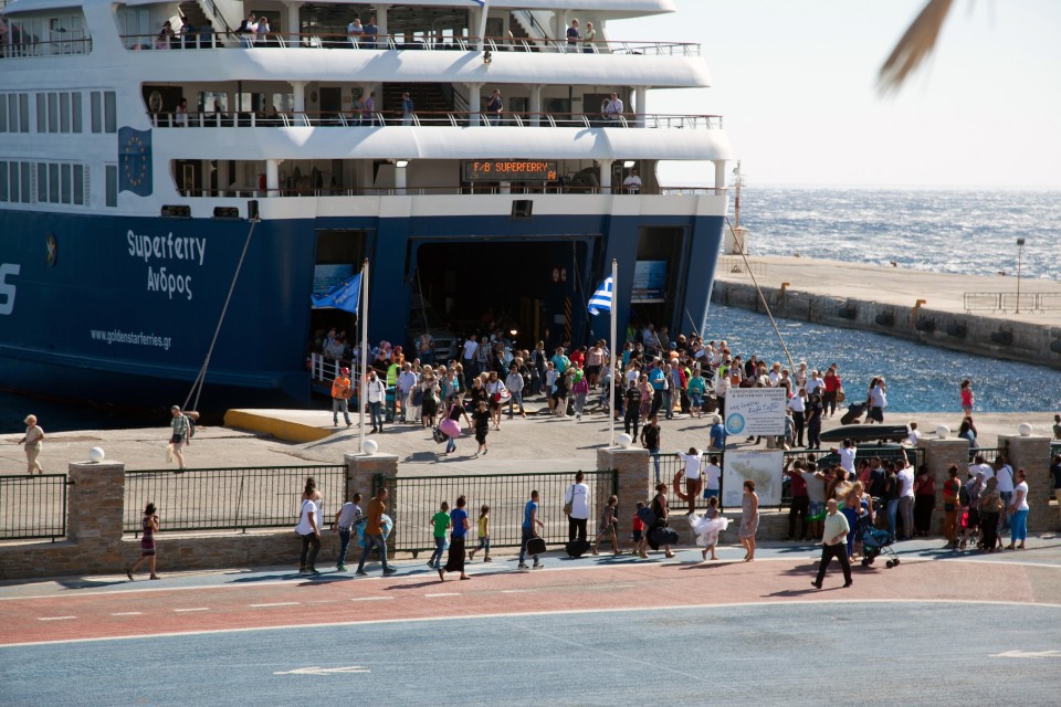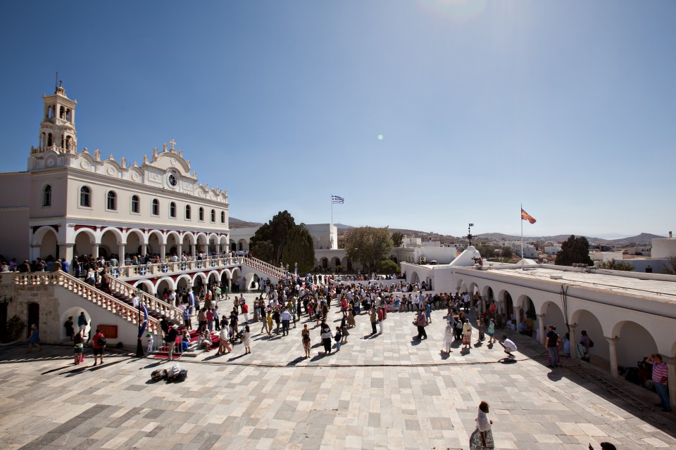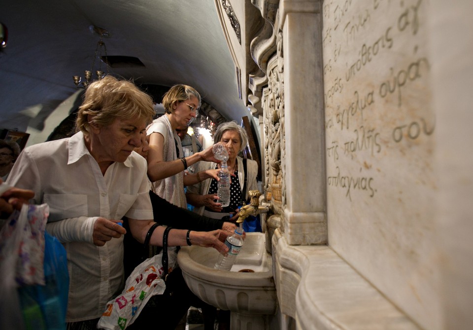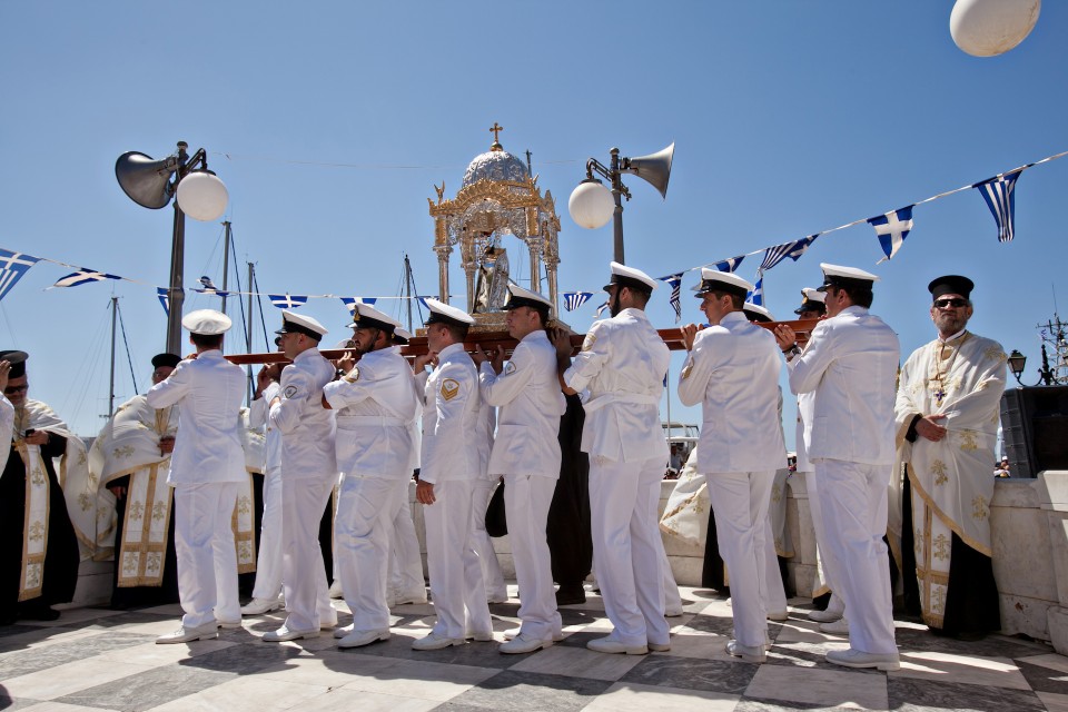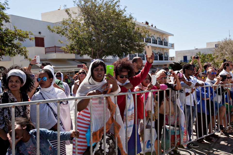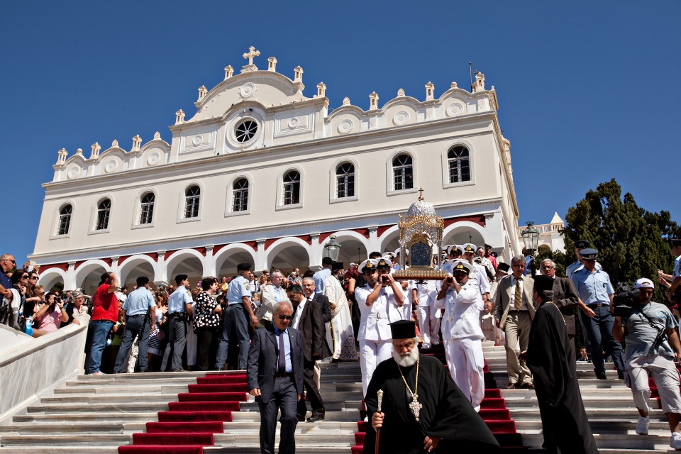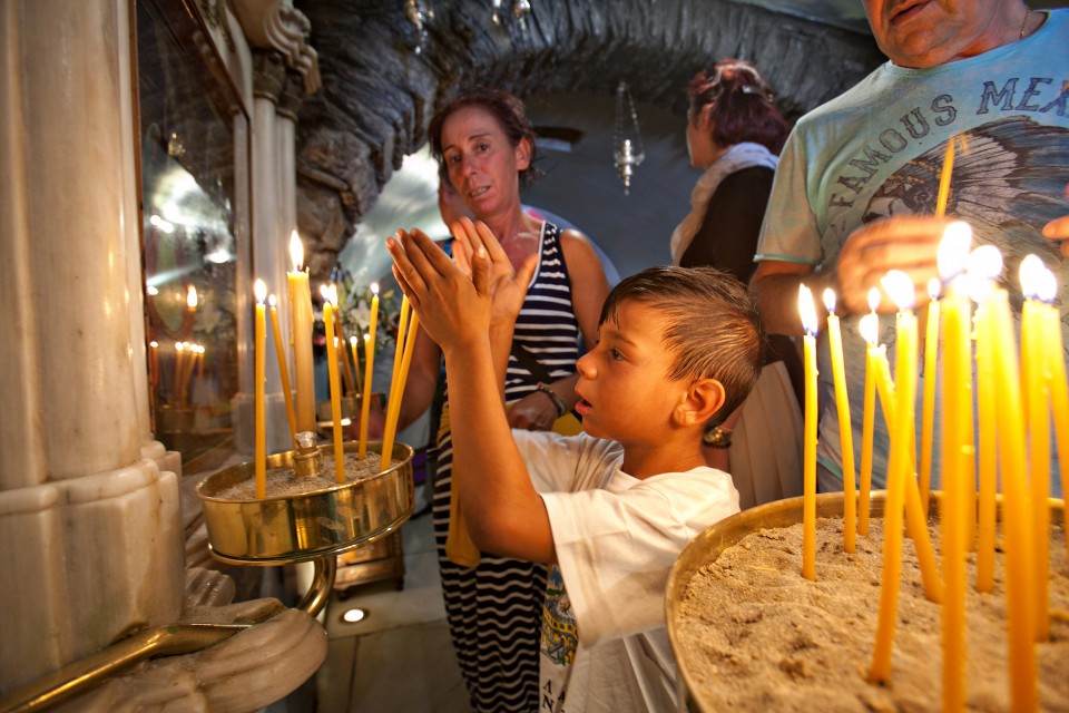 Τάματα, ματωμένα γόνατα και βουτιές στο λιμάνι. Η Έβελυν Φώσκολου απαθανάτισε τον Δεκαπενταύγουστο στο νησί της Μεγαλόχαρης.