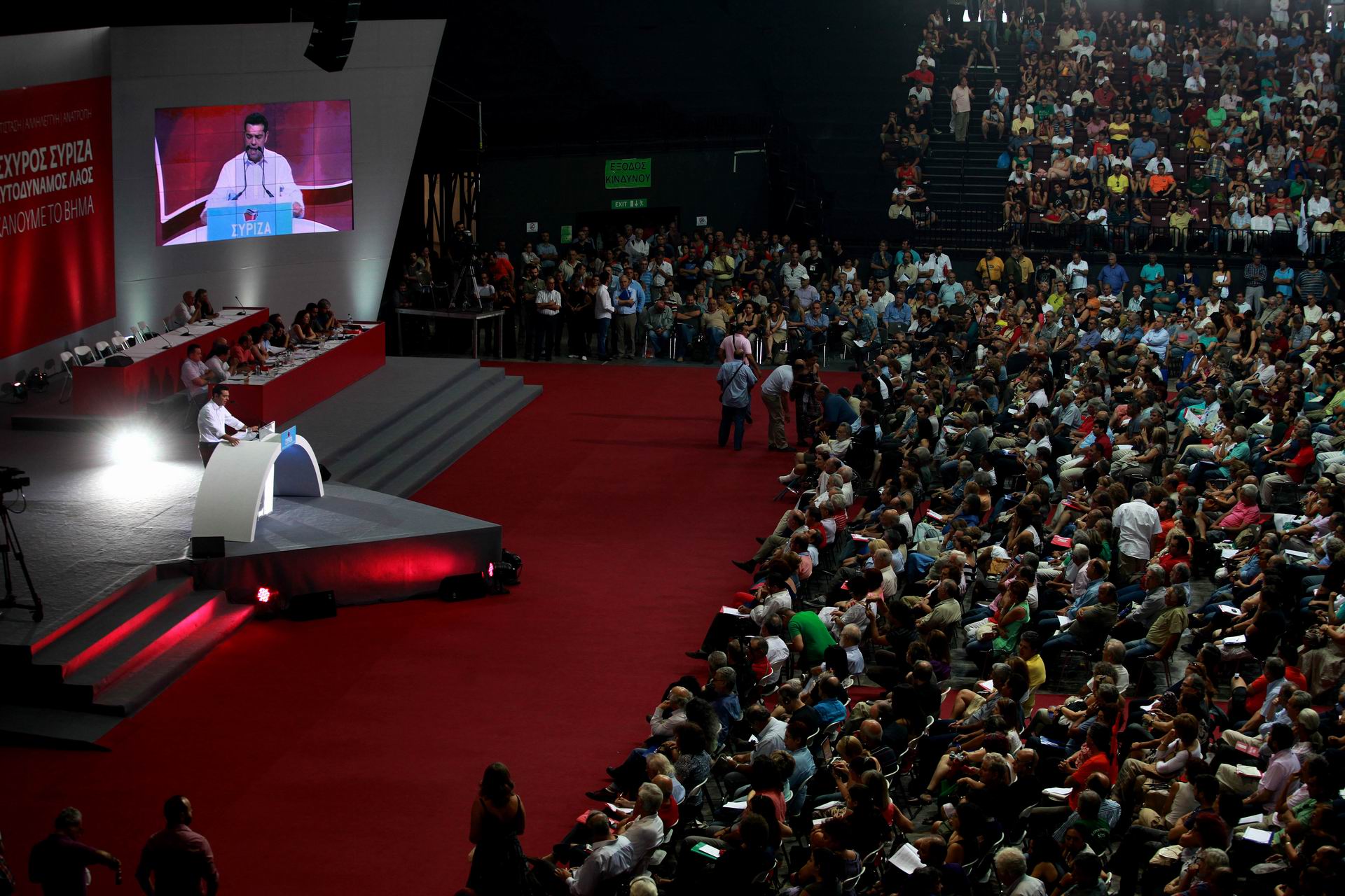 Πίσω από τις λέξεις. Νέο Φάληρο, Αθήνα Ο πρέρδρος του ΣΥΡΙΖΑ Αλέξης Τσίπρας απευθύνεται στο κοινό κατά τις εκδηλώσεις του πρώτου συνεδρίου του κόμματος στο Στάδιο Ειρήνης και Φιλίας 13 Ιουλιου 2013 Φωτο: Μενέλαος Μύριλλας