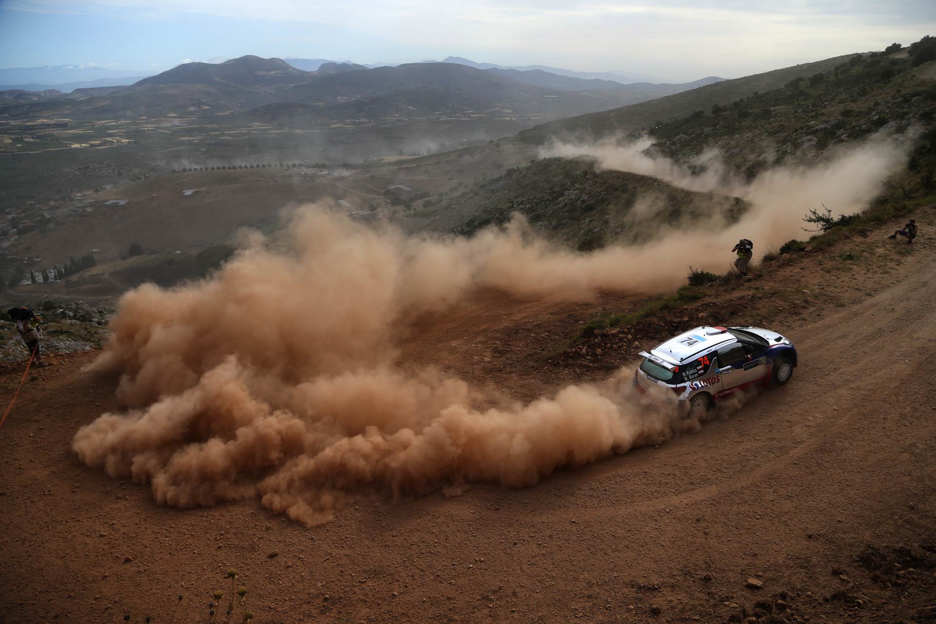 Κάψα και σκόνη. Μυκήνες, Πελοπόννησος. Άποψη του κοινού που παρακολουθεί την έβδομη ειδική διαδρομή κατά τη δέυτερη μέρα του φετινού Ράλι Ακρόπολις. 2 Ιουνίου 2013 Φωτο: Φίλιππος Μεσσίνης