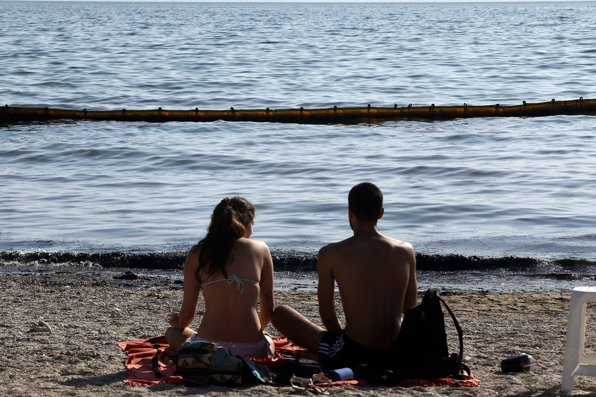 Ζευγάρι κοιτά το μαύρο στην αθηναϊκή ριβιέρα.