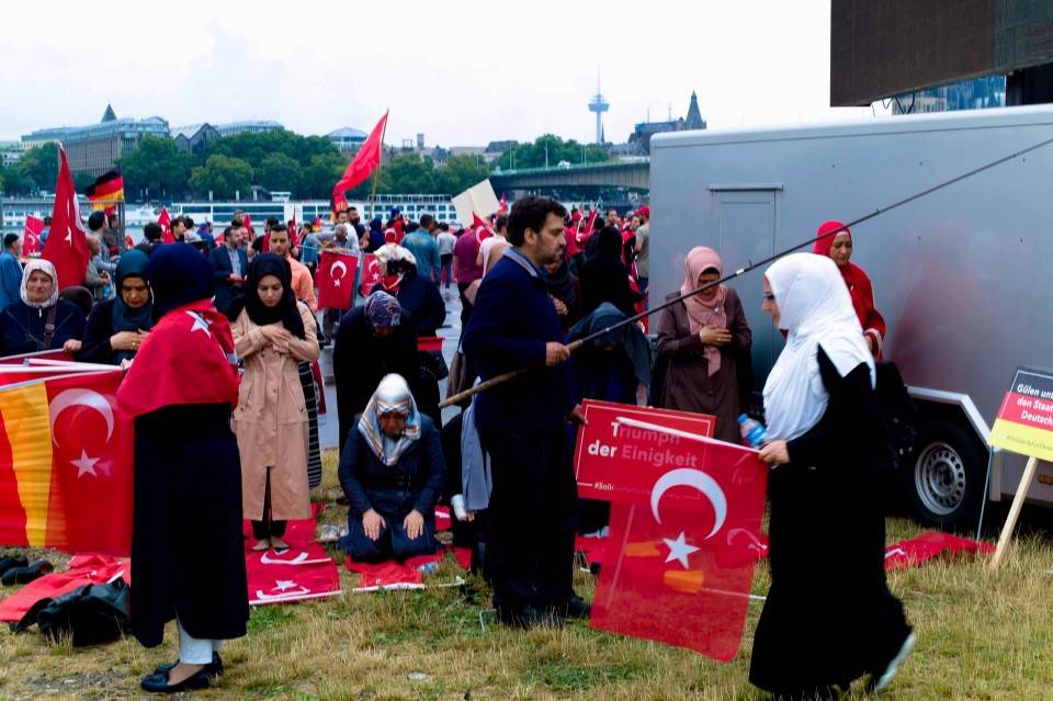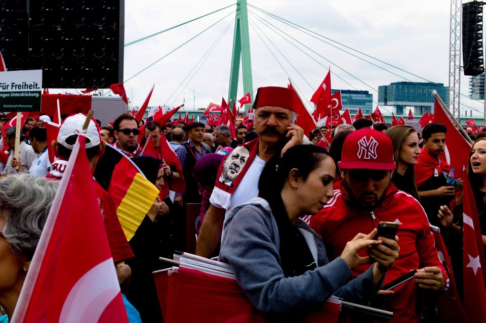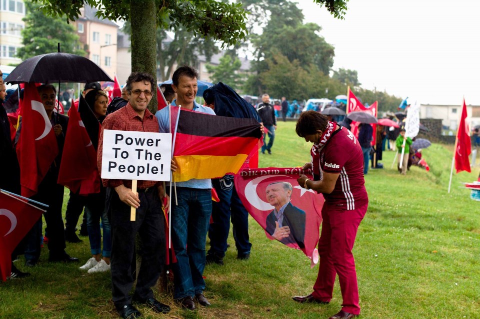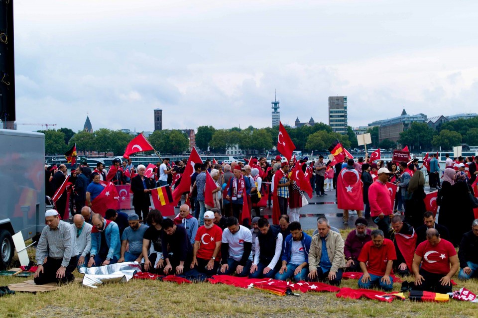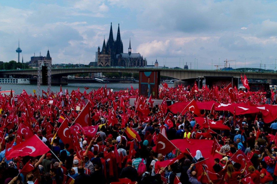 Την Κυριακή 31 Ιουλίου, υπήρξε μια τεράστια διαδήλωση στην Κολωνία, η οποία διοργανώθηκε από την Τουρκική κοινότητα στη Γερμανία αλλά και από Τούρκους που ζουν σε όλη την Ευρώπη. Η συμμετοχή ήταν μεγάλη, περίπου 30 000 άτομα συγκεντρώθηκαν, ίσως και περισσότεροι, όλοι οπαδοί τουΤούρκου προέδρου Ρετζέπ Ταγίπ Ερντογάν. Η συγκέντρωση ήταν ειρηνική, φυσικά παρακολουθούμενη από ισχυρές δυνάμεις της γερμανικής αστυνομίας, αλλά και προστατευόμενη από τον γερμανικό νόμο, που επιτρέπει ακόμη και σε αλλοδαπούς να διοργανώνουν τέτοιες συγκεντρώσεις. Κι άλλες συγκεντρώσεις, όπως ακροδεξιών οργανώσεων, πραγματοποιήθηκαν την ίδια μέρα, η κάθε μια, όμως, πολύ καλά φρουρούμενη από πολυάριθμους αστυνομικούς , ώστε να αποφευχθούν τυχόν βίαια επεισόδια.
