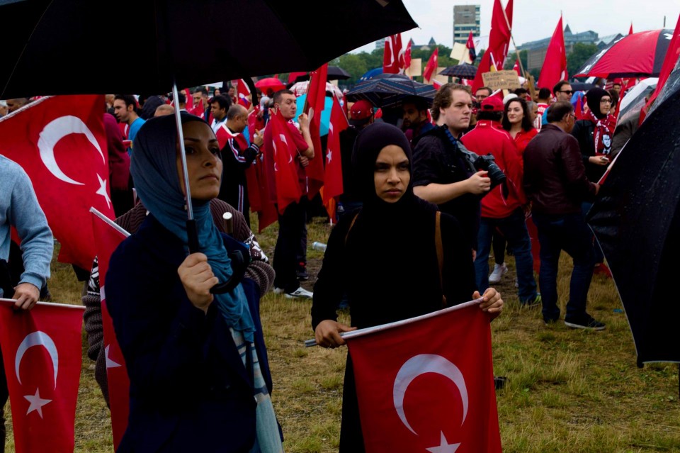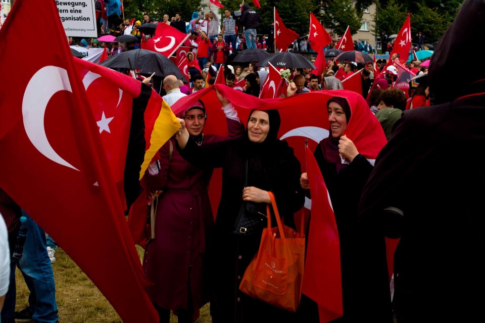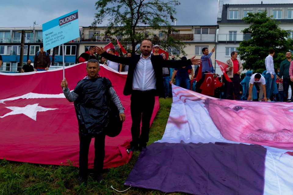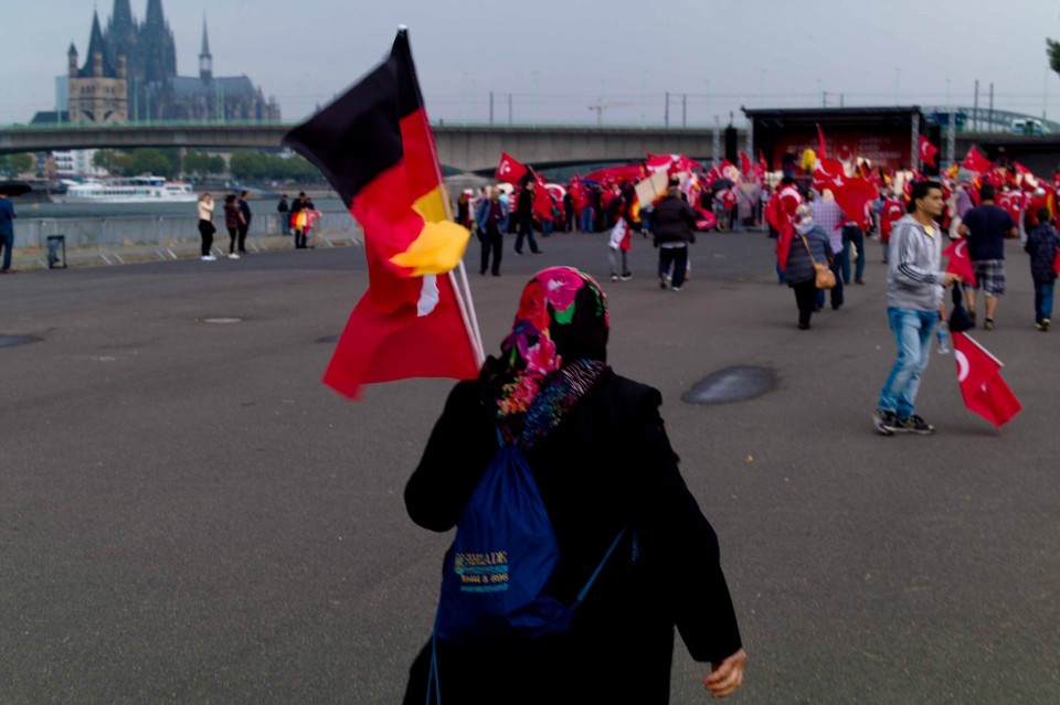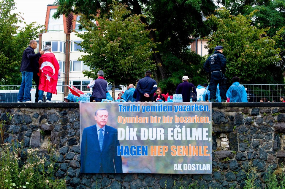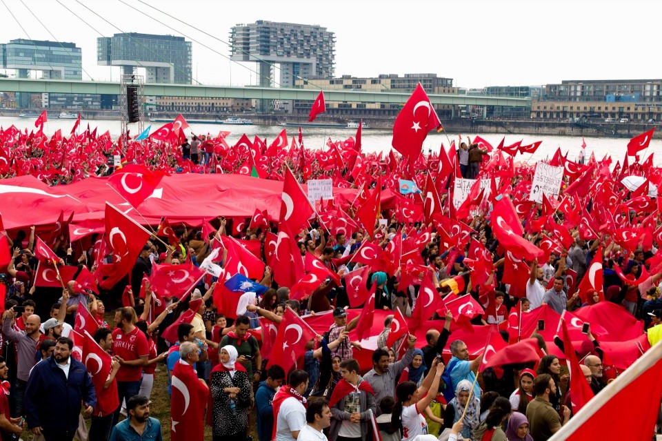 Την Κυριακή 31 Ιουλίου, υπήρξε μια τεράστια διαδήλωση στην Κολωνία, η οποία διοργανώθηκε από την Τουρκική κοινότητα στη Γερμανία αλλά και από Τούρκους που ζουν σε όλη την Ευρώπη. Η συμμετοχή ήταν μεγάλη, περίπου 30 000 άτομα συγκεντρώθηκαν, ίσως και περισσότεροι, όλοι οπαδοί τουΤούρκου προέδρου Ρετζέπ Ταγίπ Ερντογάν. Η συγκέντρωση ήταν ειρηνική, φυσικά παρακολουθούμενη από ισχυρές δυνάμεις της γερμανικής αστυνομίας, αλλά και προστατευόμενη από τον γερμανικό νόμο, που επιτρέπει ακόμη και σε αλλοδαπούς να διοργανώνουν τέτοιες συγκεντρώσεις. Κι άλλες συγκεντρώσεις, όπως ακροδεξιών οργανώσεων, πραγματοποιήθηκαν την ίδια μέρα, η κάθε μια, όμως, πολύ καλά φρουρούμενη από πολυάριθμους αστυνομικούς , ώστε να αποφευχθούν τυχόν βίαια επεισόδια.