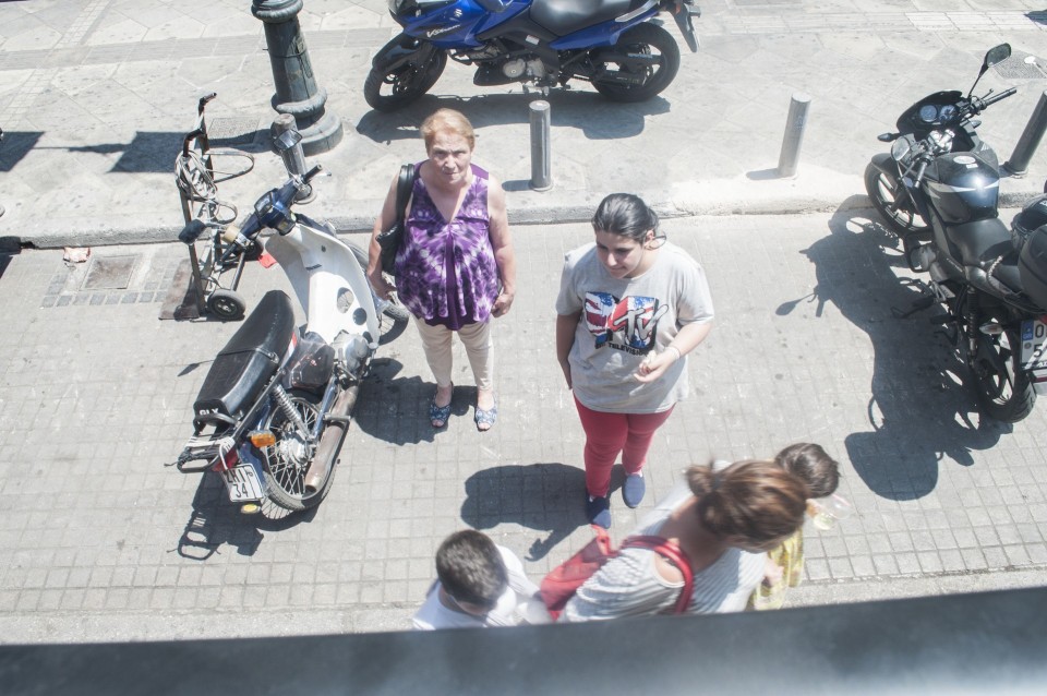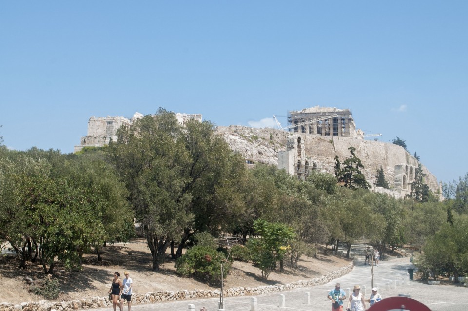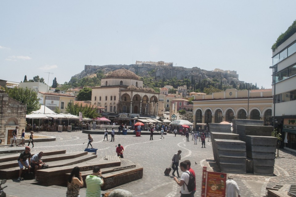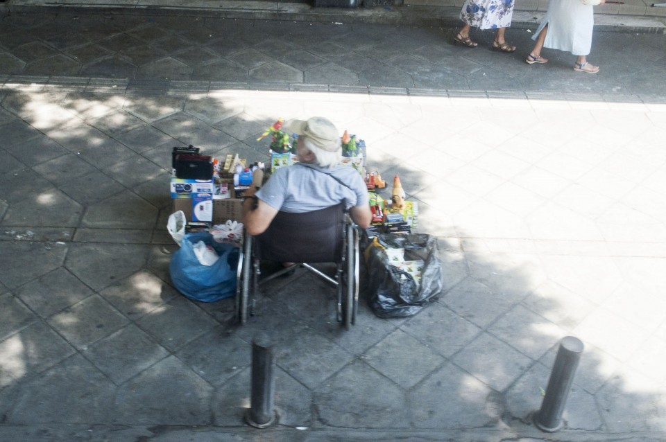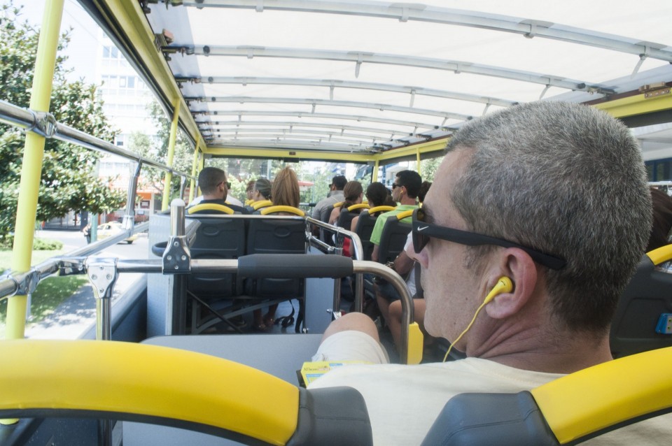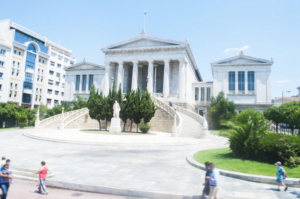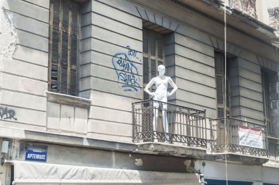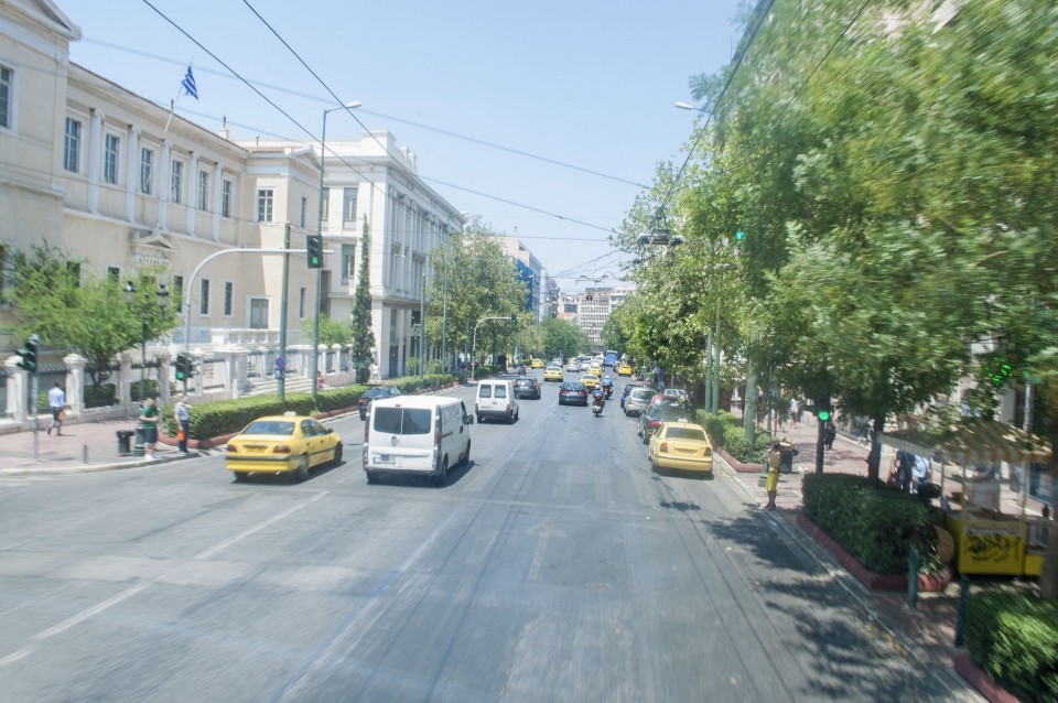 Στο σχεδόν γεμάτο λεωφορείο της Athens Open Tour οι τουρίστες τοποθετούν τα ακουστικά προκειμένου να ακούσουν την ηχογραφημένη περιήγηση. Οι περισσότεροι φορούν καπέλα, εάν και το συγκεκριμένο λεωφορείο έχει (ευτυχώς) στέγαστρο, ο οδηγός βάζει μπρος, ξεκινάμε. Οι τουρίστες για κάποιο λόγο προτιμούν να κοιτούν τους χάρτες τους και όχι ιδιαίτερα έξω από το λεωφορείο, δε διακρίνω κανένα ιδιαίτερο ενθουσιασμό , μάλιστα μια κοπέλα αποκοιμιέται, είναι κι αυτή η ελαφριά ρυθμική κίνηση του οχήματος που αναπόφευκτα σε αποκοιμίζει. Περνάμε από διάφορα αξιοθέατα όπως τα Προπύλαια, το Μουσείο, οι στύλοι του Ολυμπίου Διός. Αυτό που λένε ότι η Αθήνα είναι ένα χάος; Ε, ισχύει απόλυτα. Πρέπει να ξέρεις πού να κοιτάξεις. Κανείς από τους τουρίστες δεν είναι έτοιμος για να προλάβει να δει το Σπίτι με τις Καρυάτιδες στην Ασωμάτων ή το γκράφιτι με χέρια που προσεύχονται προς τη γη, στο πάρκινγκ κοντά στην Ομόνοια. Αλλά πέρα από τα κτίσματα είναι και οι άνθρωποι, που περπατούν στην πόλη χωρίς να σκέφτονται ότι κάποιος τους παρατηρεί από κάπου λίγο πιο ψηλά. Μια διαπίστωση: οι Αθηναίοι περπατούν κουρασμένοι. Ας το ρίξουμε στην ανυπόφορη καλοκαιρινή ζέστη.
