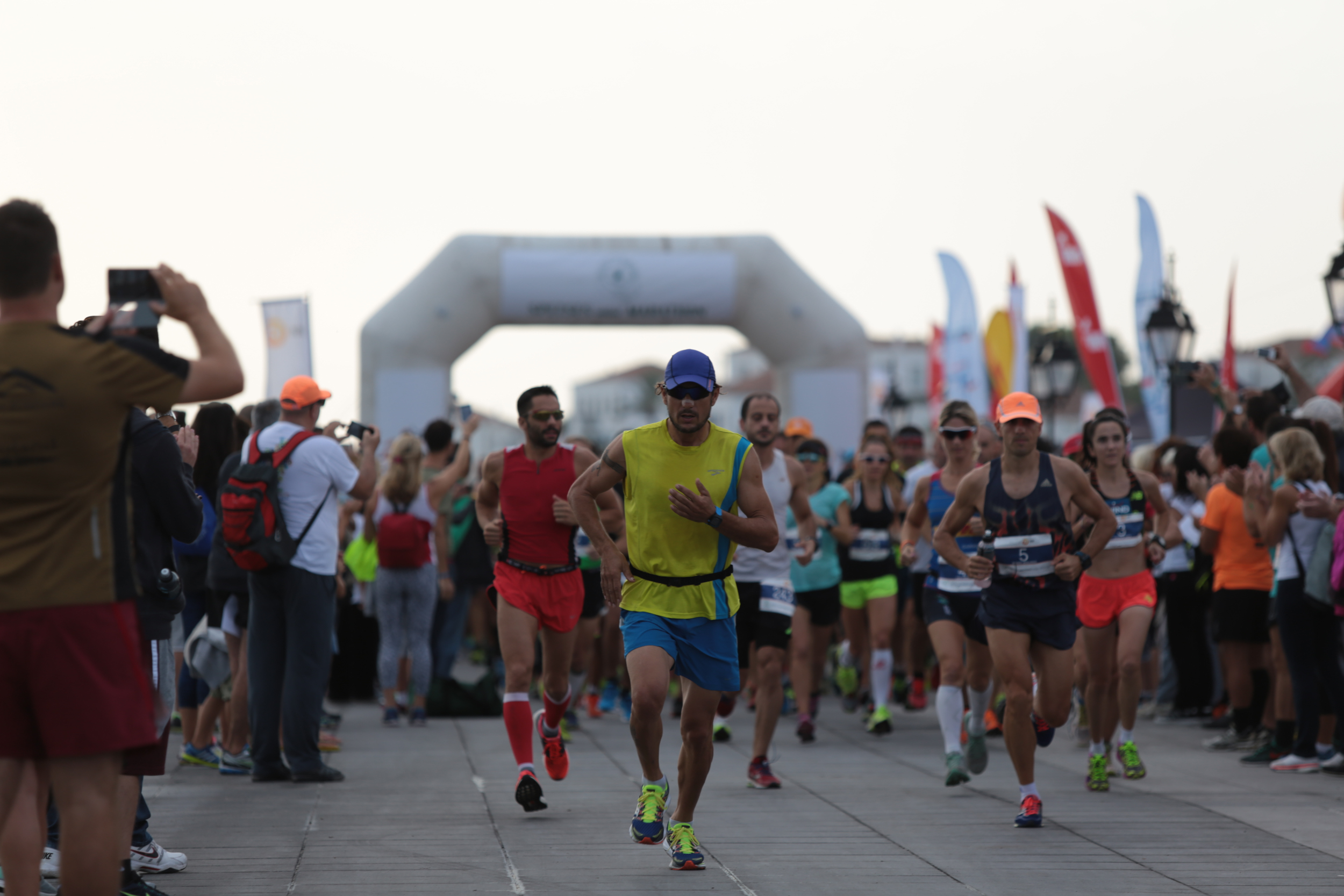 Ο περισσότερος κόσμος είχε φυσικά μαζευτεί μπροστά στο ιστορικό Ποσειδώνιο. Ο χώρος ανάμεσα στα περίπτερα των περήφανων χορηγών γέμισε πολύχρωμα μπλουζάκια, γέλια πειράγματα, και λίγη ανυπομονησία, μέχρι να δοθεί το σύνθημα της εκκίνησης. Κι αμέσως μετά το ποτάμι ξεκίνησε προς τη ντάπια. Κι αφού ανέβηκε την πρώτη ανηφόρα, κατέλαβε όλο το μήκος του δρόμου προς την Πυτιούσα. Ο ήλιος έλαμπε, ο κόσμος στην άκρη χειροκροτούσε με θέρμη κι όλοι χαμογελούσαν καθώς κάθε βήμα έφερνε τον τερματισμό όλο και πιο κοντά.