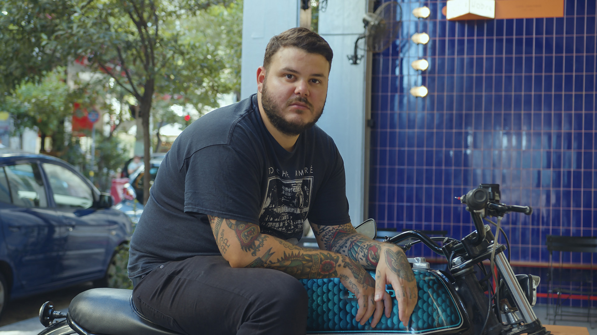 Με τα τατού του (τον συνδέει μάλιστα στενή φιλία με τη Vasso – ο ένας έχει σχεδιάσει πάνω στον άλλον), τη μηχανή του (που πια καβαλά απόλυτα προσεκτικά), τις μουσικές του (έσκασε στο γύρισμα με t-shirt Touché Amoré, μιας hardcore μπάντας από το LA), την πολύ κατασταλλαγμένη -παρά το νεαρό της ηλικίας- άποψη για τη ζωή στην κουζίνα (και όχι μόνο). Μεγάλο σχολείο η επταετία που δούλεψε στην οδό Ηφαίστου στο Μοναστηράκι…