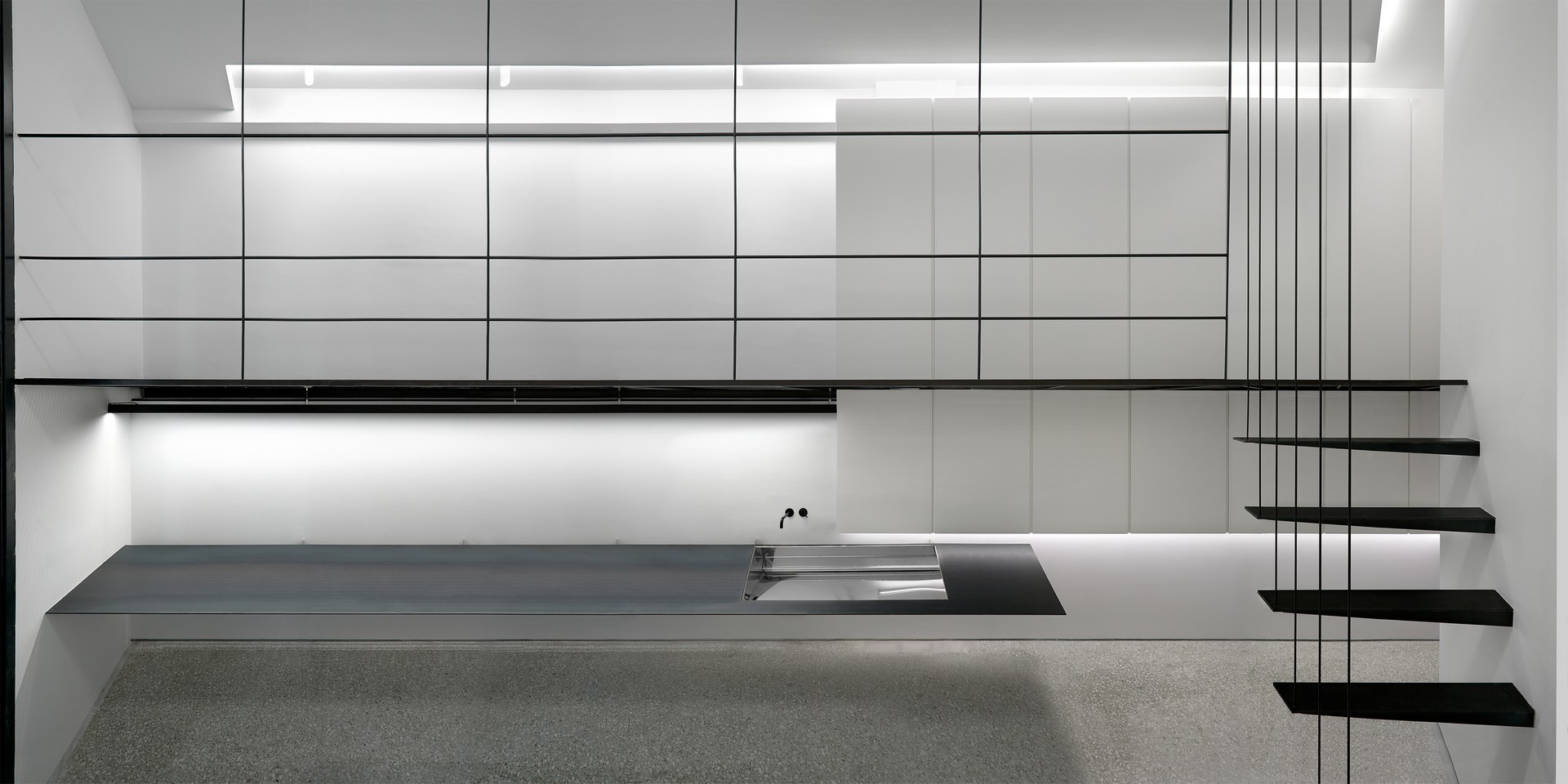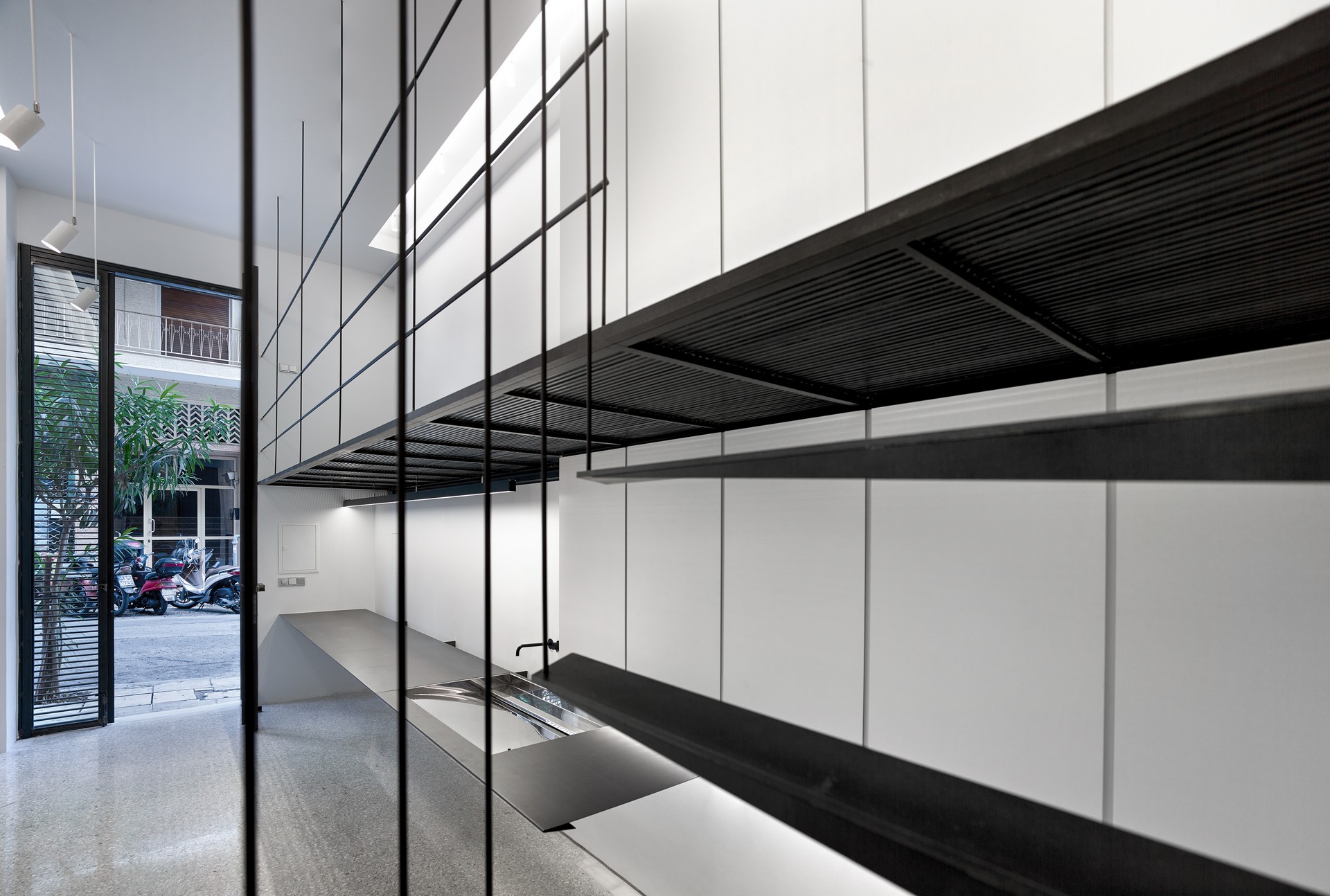 Δύο όμορα αλλά αυτόνομα ισόγεια καταστήματα μιας παλιάς αθηναϊκής πολυκατοικίας στην περιοχή του Παγκρατίου, μετατράπηκαν σε δικηγορικό γραφείο και σε εργαστήριο ενός καλλιτέχνη αντίστοιχα. Η αρχιτεκτονική επέμβαση του Άγι Μουρελάτου διακρίθηκε πρόσφατα στα βραβεία ΔΟΜΕΣ 2018 στην κατηγορία «Καλύτερο πρώτο έργο νέου αρχιτέκτονα των ετών 2013-2017».