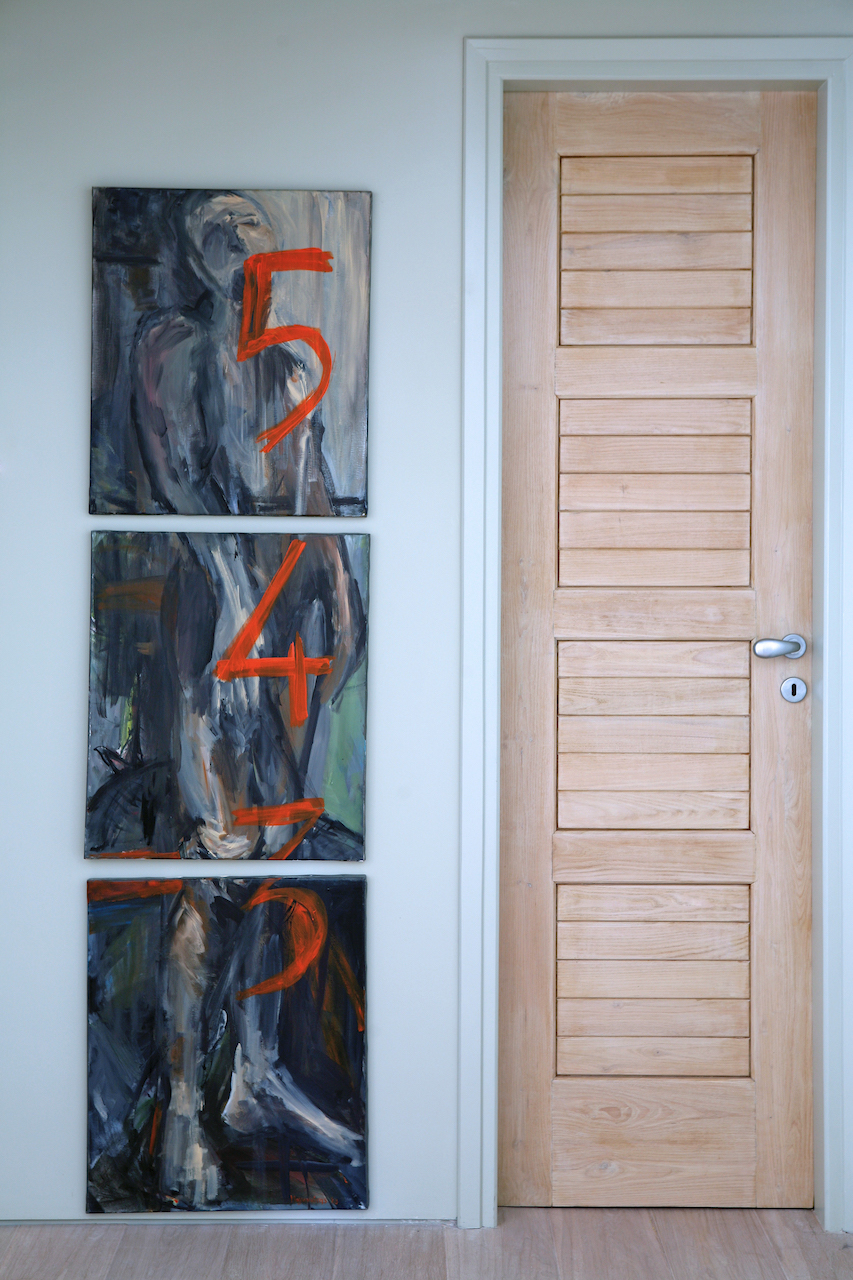 Ένα ολόσωμο, σε φυσικό μέγεθος, ζωγραφικό αυτοπορτρέτο του ιδιοκτήτη τοποθετήθηκε στον τοίχο σε άμεσο διάλογο με μια πόρτα από καστανιά, βαμμένη με ειδική επεξεργασία white-washed.