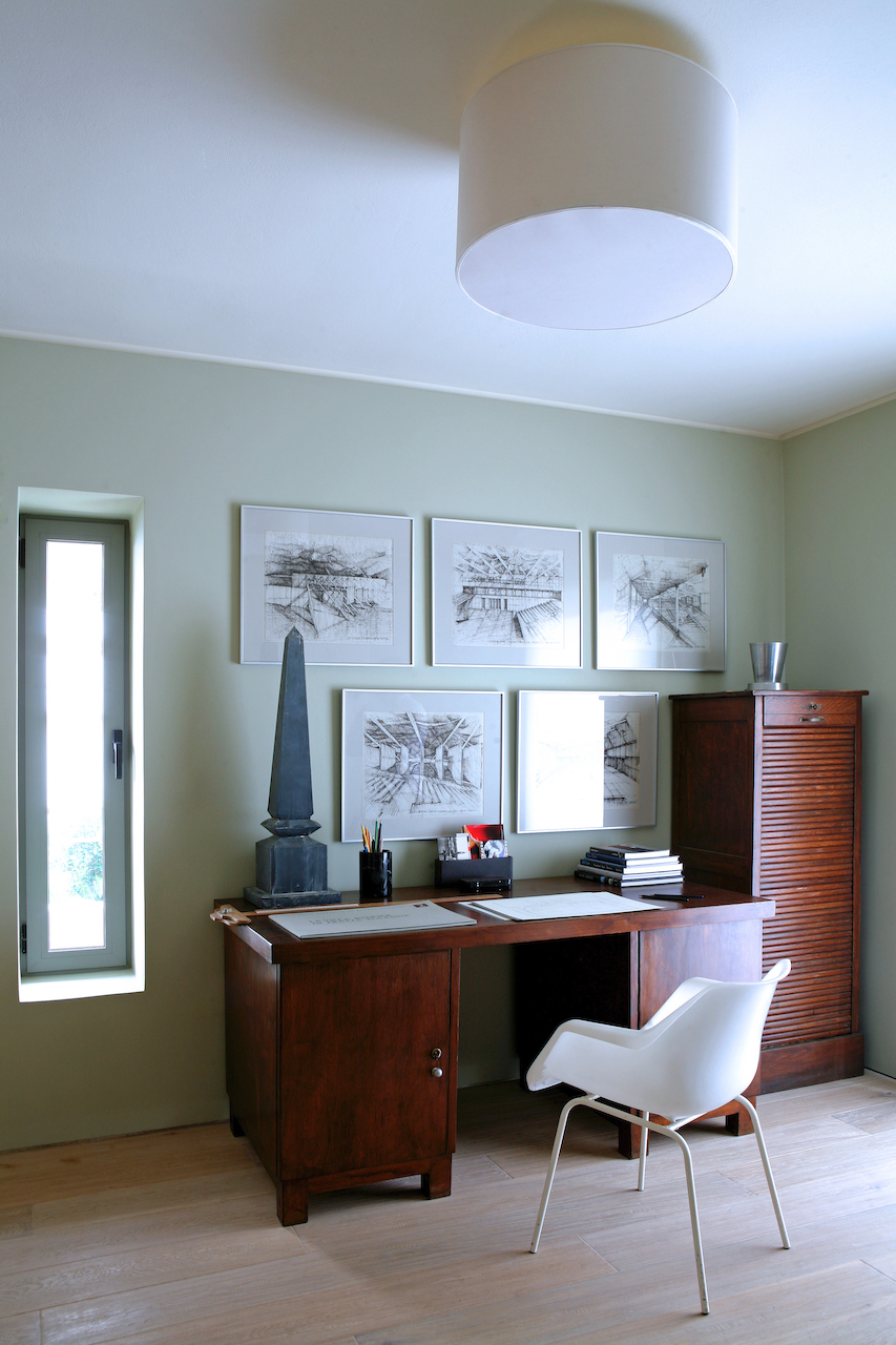 Το υπνοδωμάτιο αξιοποιεί μια παλιά ντουλάπα μετατρέποντας την σε βιβλιοθήκη και έπιπλο τηλεόρασης που έρχεται σε αντίθεση με τα κομοδίνα από ακρυλικό και σε φουτουριστικό ύφος δεκαετίας του ’60 της Kartell, σχεδιασμένα από την Anna Castelli Ferrieri. Ένα ολόσωμο, σε φυσικό μέγεθος, ζωγραφικό αυτοπορτρέτο του ιδιοκτήτη τοποθετήθηκε στον τοίχο σε άμεσο διάλογο με μια πόρτα από καστανιά, βαμμένη με ειδική επεξεργασία white-washed.