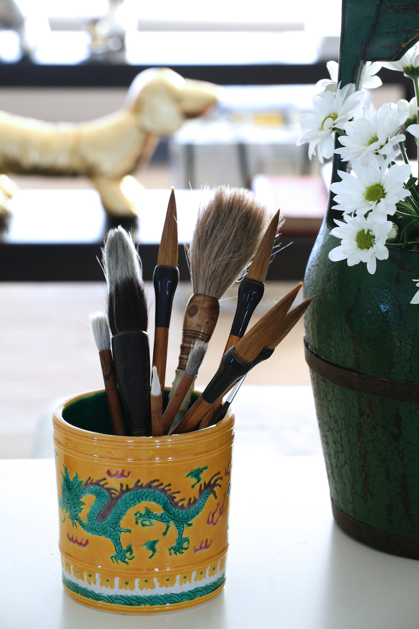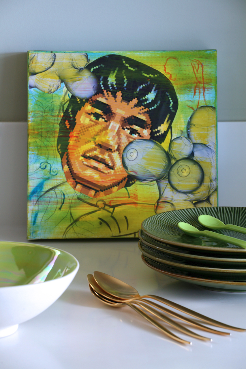 «Η επιλογή των αντικειμένων τελικά έγινε ένα “παιχνίδι” που θυμίζει επιμέλεια έκθεσης σύγχρονης τέχνης. Η ανάμειξη καθημερινών αντικειμένων, αναμνηστικών από ταξίδια, δικών μου έργων τέχνης αλλά και άλλων καλλιτεχνών δημιούργησε έναν διάλογο που τελικά αναδεικνύει ένα πολύπλευρο αφηγηματικό περιβάλλον. Σε επίπεδο διακόσμησης πολύτιμες, συμβουλές προσέφερε ο interior designer και καλός φίλος Δημήτρης Τέλης», εξηγεί ο ιδιοκτήτης.