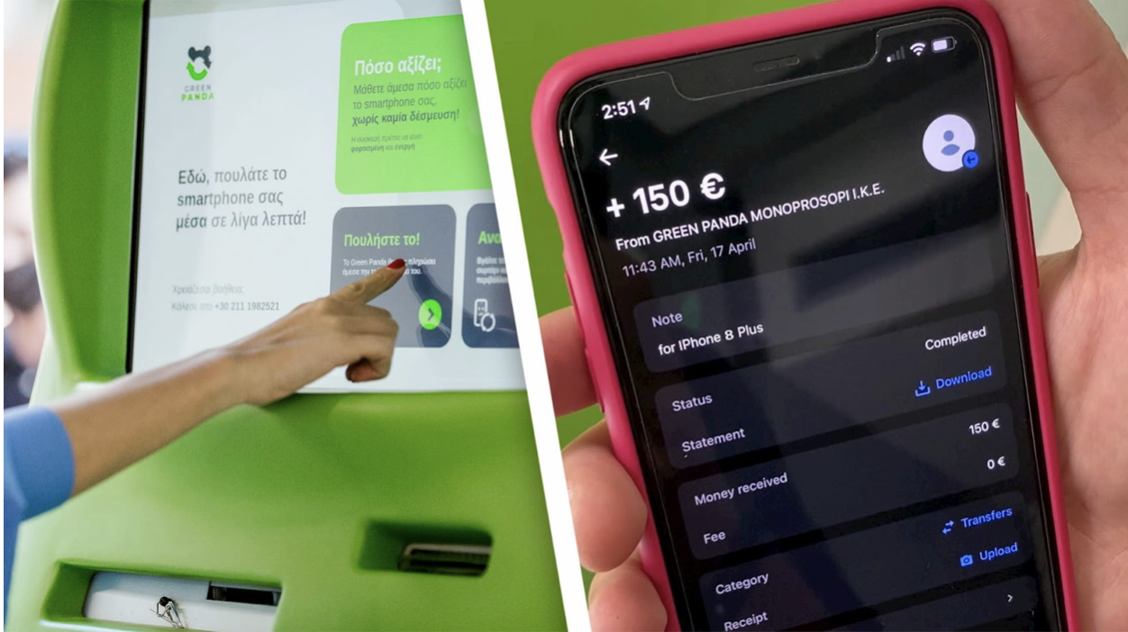 Η επιλογή αυτή ονομάζεται Green Panda και την προσφέρει μια ελληνική startup, η οποία δημιούργησε τα πρώτα μηχανήματα ανακύκλωσης για smartphones. Τα Green Panda αγοράζουν επιτόπου τη συσκευή σας και πληρώνουν για την αξία της την ίδια στιγμή, με άμεση κατάθεση στον τραπεζικό σας λογαριασμό.