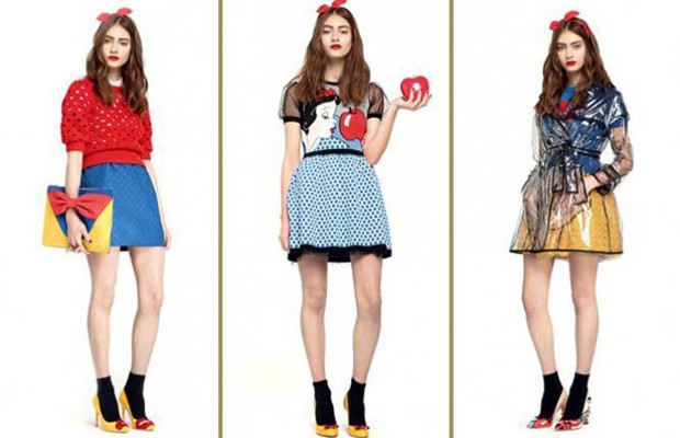 H Red Valentino, η ουσιαστικά ‘λίγο πιο οικονομικά προσιτή’ σειρά του Valentino (και μια εταιρεία που πάντα έχει fun, πολύχρωμα ρούχα) παρουσίασε την συλλογή της για το φθινόπωρο-χειμώνα του 2014. Βασικός της θεματικός κορμός είναι η Χιονάτη, αχά, αυτή με τους 7 νάνους και τον creepy πρίγκιπα που φίλησε μια άγνωστη κοπελίτσα που πέτυχε να κοιμάται στο δάσος, επειδή why not, εκεί ήταν. Κόκκινες κορδέλες με φιόγκο, κόκκινα χείλη, και ρούχα με μια άλλοτε διακριτική, άλλοτε όχι και τόσο, καρτουνίστικη διάθεση κυριαρχούν. Η κύρια χρωματική παλέτα φυσικά είναι στα πλάισια του κόκκινο-μπλε-κίτρινο, άμα είναι να βασίσεις συλλογή σε παραμύθι το λιγότερο που μπορείς να κάνεις είναι να παραμείνεις πιστός στα πράγματα που θα το θυμίζουν, αλλά το αποτέλεσμα δεν θυμίζει αποκριάτικη στολή. Θυμίζει κάτι που θα φορούσε ένα κορίτσι το οποίο θέλει να παίξει λίγο με τα ρούχα του, δεν το νοιάζει να είναι λίγο πιο ποπ, να γυρίσουν και δυό βλέμματα στο δρόμο. Δηλαδή νιώθω ότι πρέπει να τονίσουμε το ότι υπάρχουν στη συλλογή γόβες με κουκουβάγιες στο πίσω μέρος-και μαύρα καλτσάκια, όλα συνδυάζονται με καλτσάκια στον κοριτσένιο κόσμο.