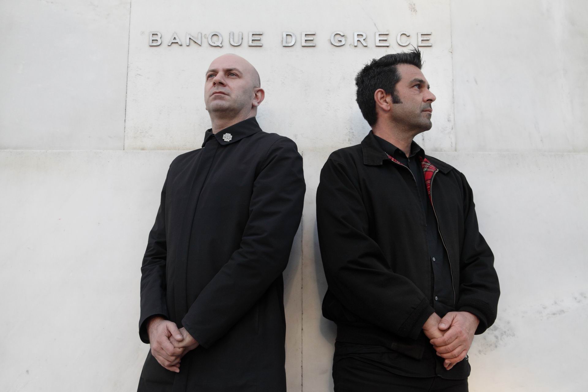 Voltnoi Brege αριστερά και Quetempo δεξιά έξω από την Τράπεζα της Ελλάδος. Άραγε θα υπάρχει αυτό το κτίριο ύστερα από μερικά χρόνια;